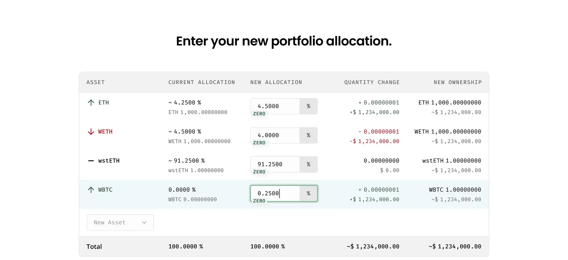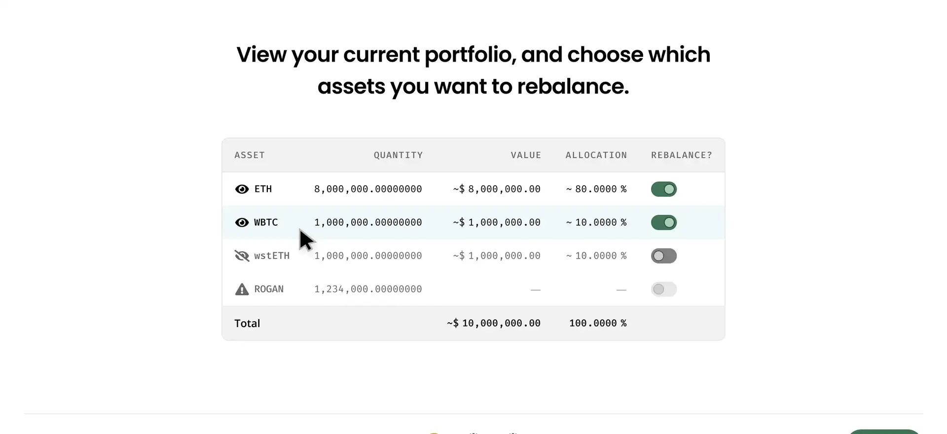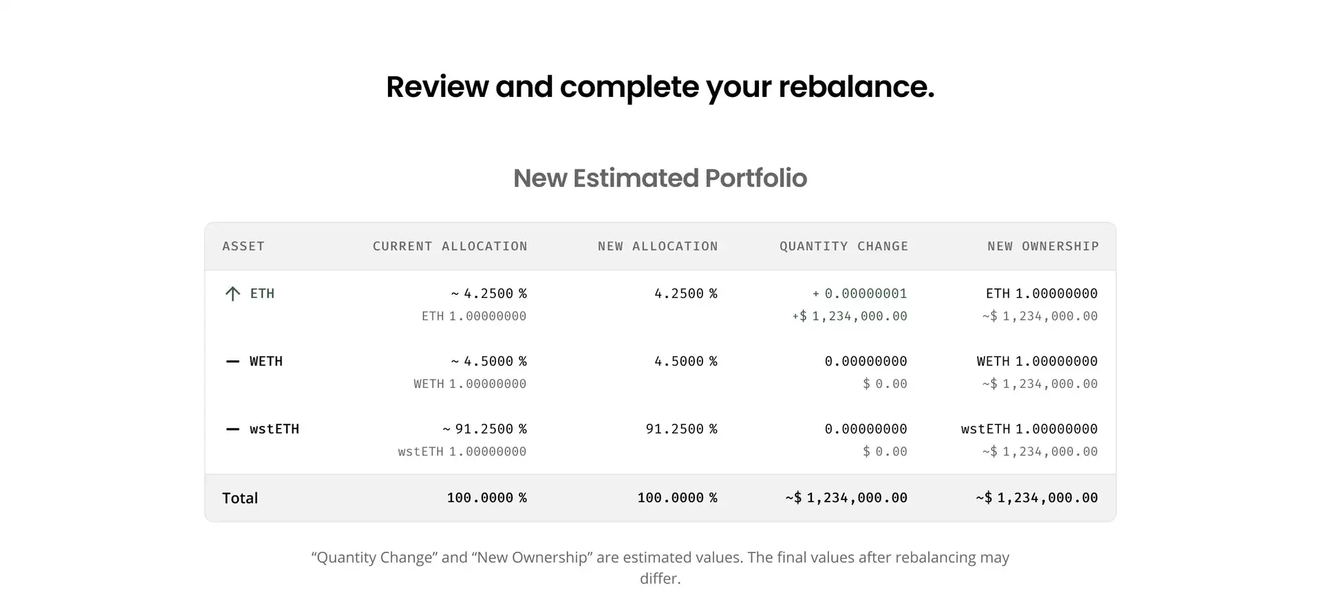 - Execute Transactions: The DApp will suggest all the necessary transactions to execute in order to receive the portfolio with your desired allocations.