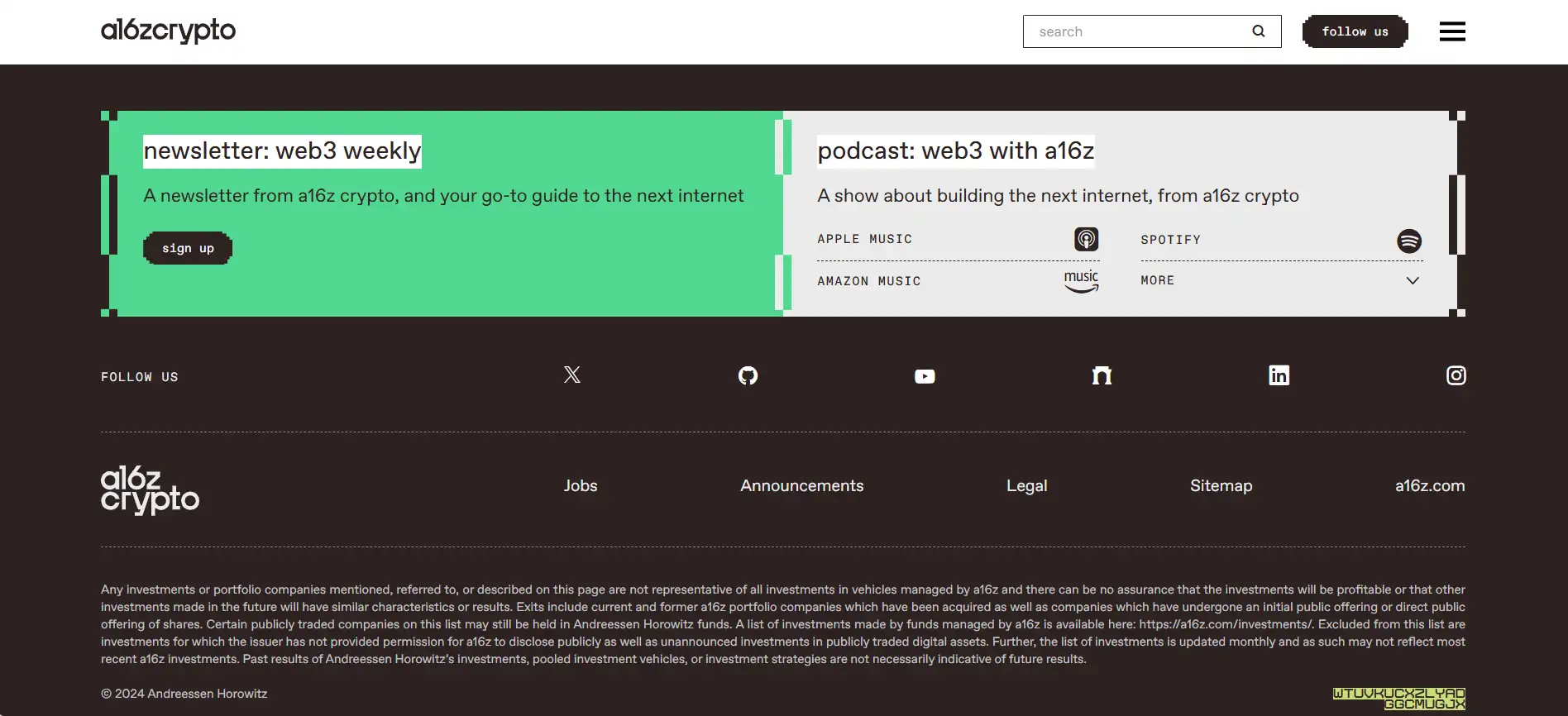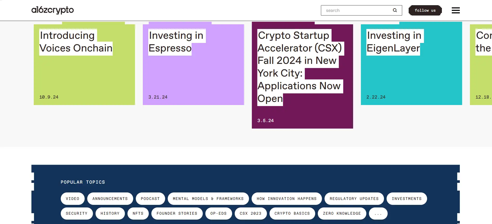 - Visit the Official Website: Go to a16zcrypto.com to explore their investment thesis, CSX accelerator, and research library.