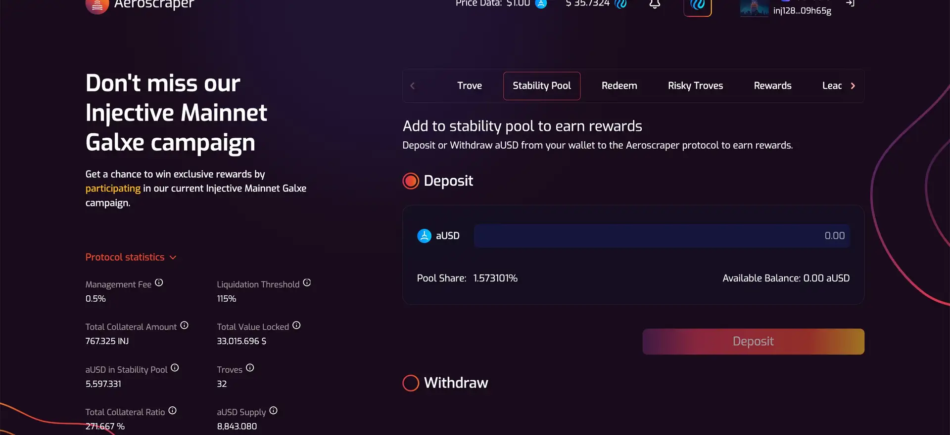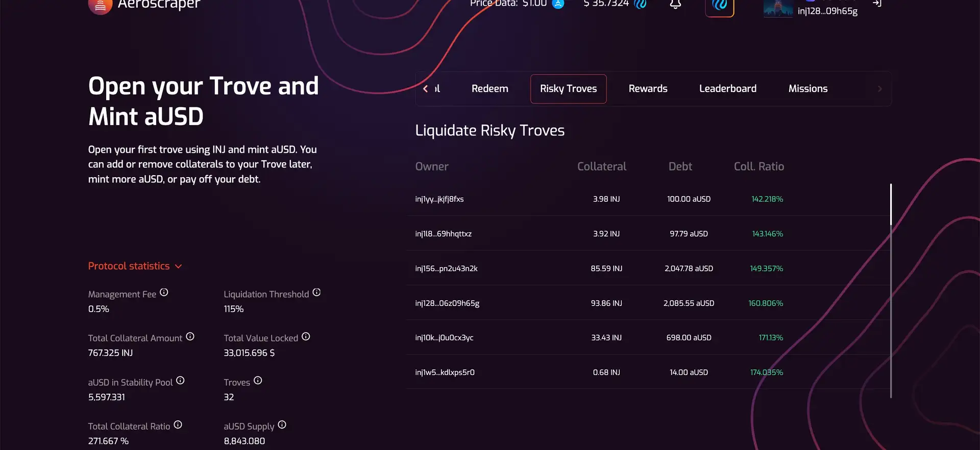 Aeroscraper has established itself as a prominent player in the DeFi ecosystem, leveraging the capabilities of the Injective Protocol to offer a wide array of financial services. Since its launch, the platform has achieved several milestones, reflecting its commitment to innovation and user-centric development.