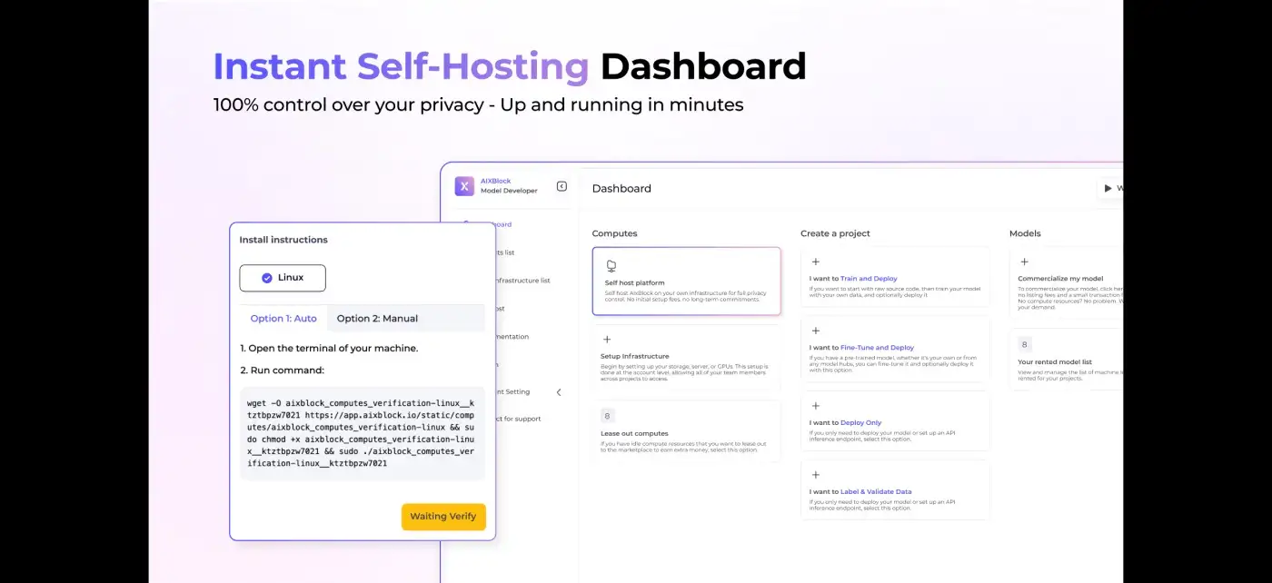 - Train & Deploy: Train AI models from raw code using private datasets and deploy them when ready.