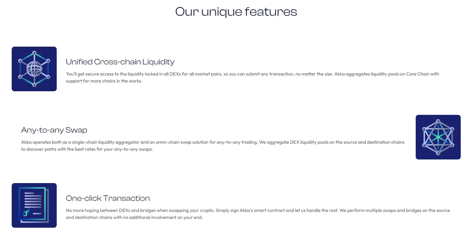 Unified Cross-chain Liquidity: Akka aggregates liquidity from multiple DEXs, giving users access to a single platform for seamless trading.