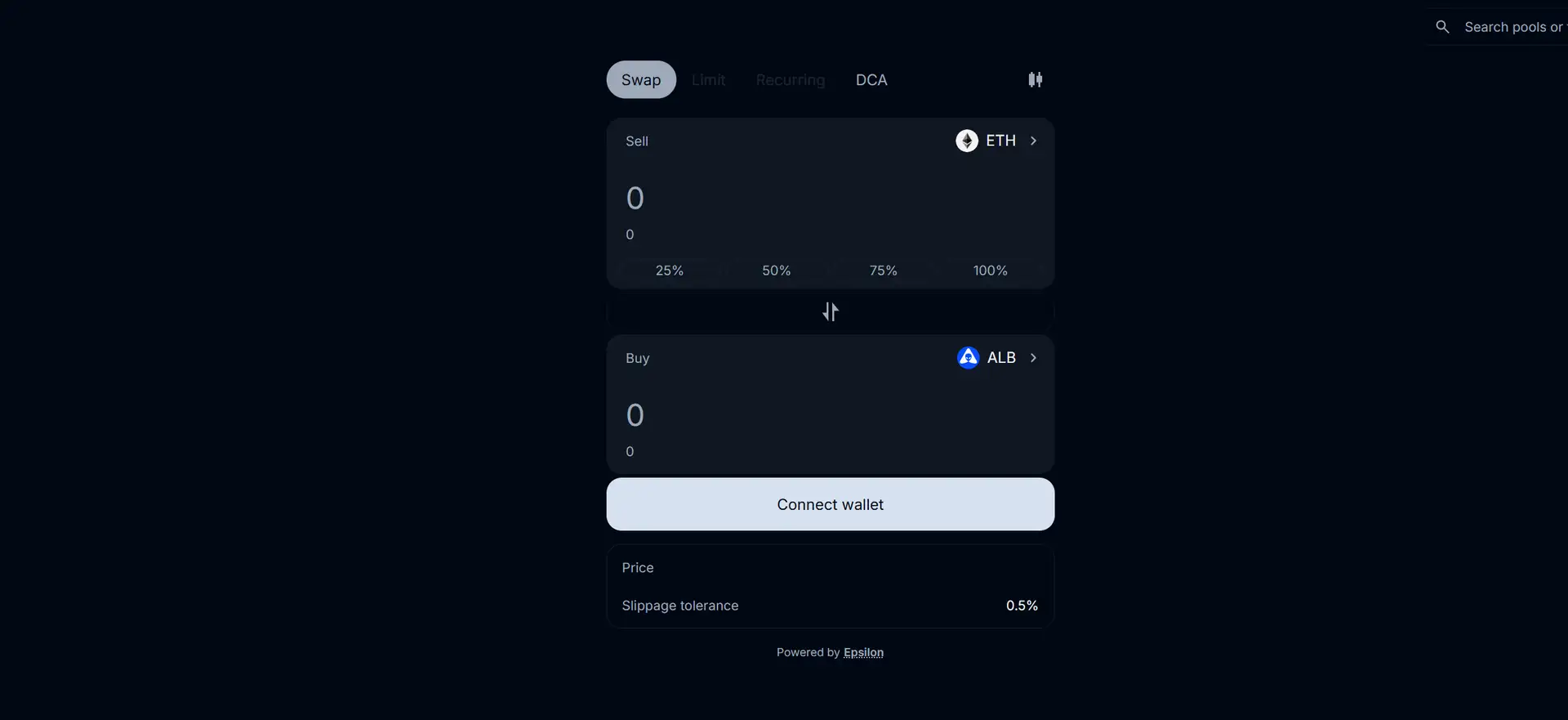 - Start Trading: Navigate to the "Launch App" interface and begin swapping any token on Base with optimal execution powered by Epsilon.