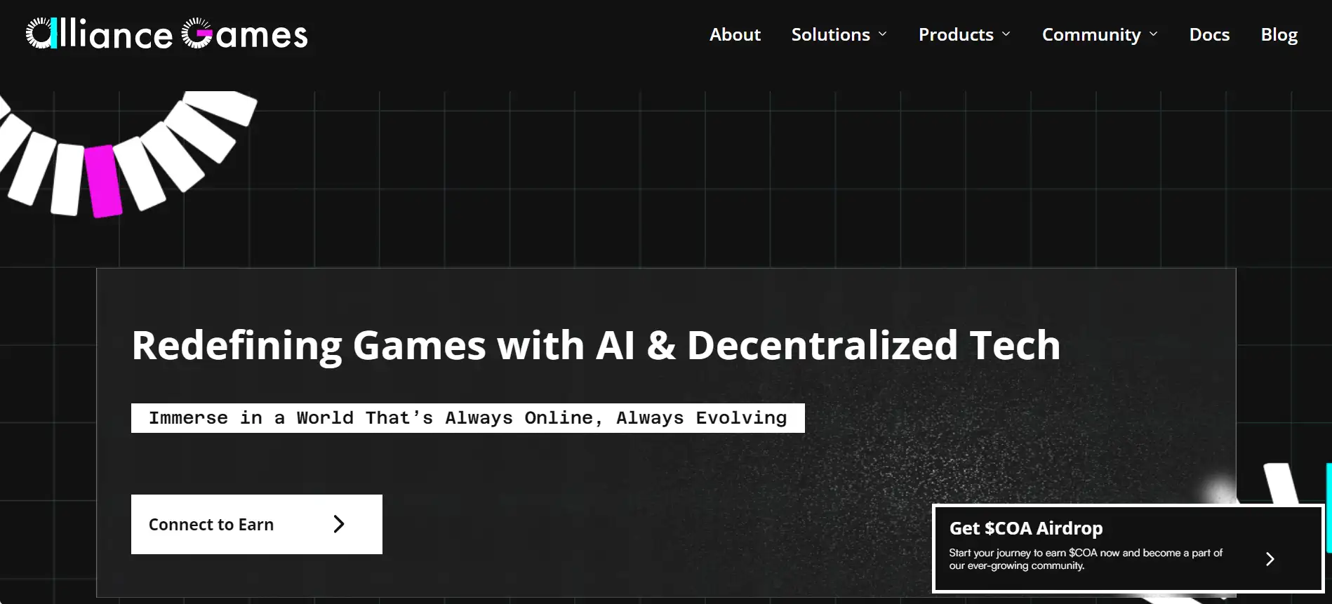 Alliance Games is a decentralized platform that empowers developers and players by combining blockchain technology, decentralized infrastructure, and AI-driven game development tools. Founded in 2019, the platform was created to overcome the challenges posed by centralized gaming systems, including server downtime, limited scalability, and the lack of player ownership. With its unique offerings, Alliance Games is reshaping the gaming landscape to prioritize community-driven creativity and adaptability.