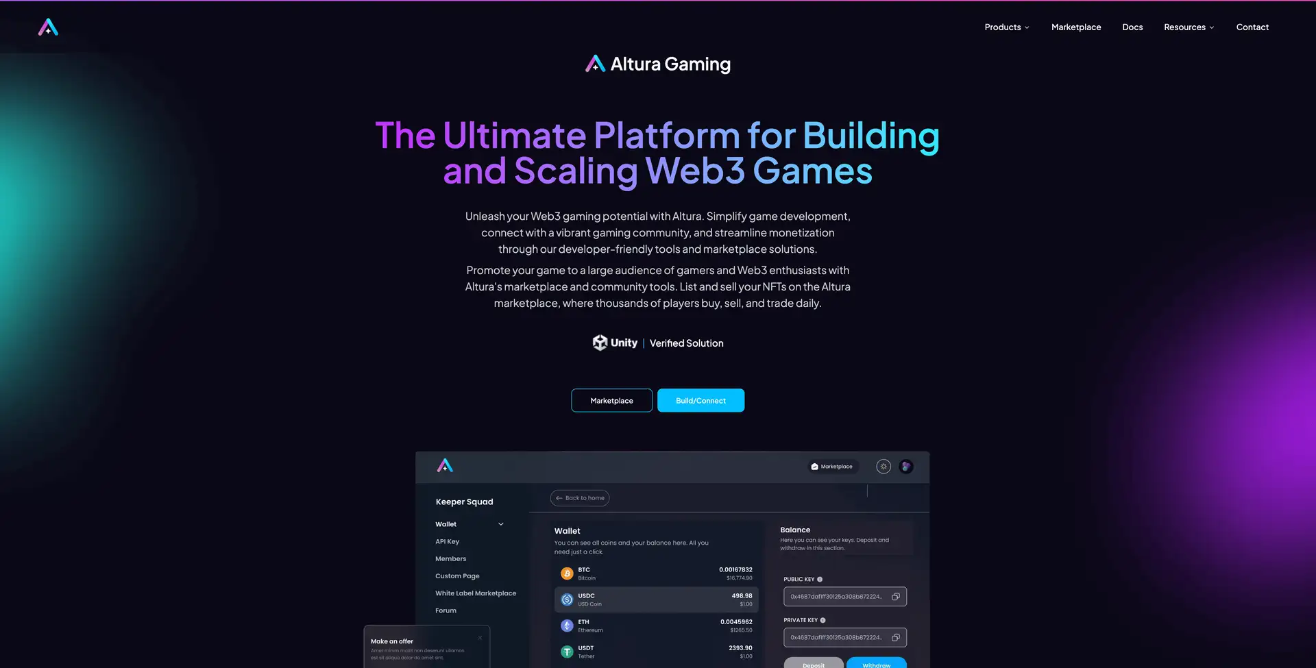 Altura focuses on offering user-friendly solutions that remove barriers to entry for developers while providing gamers with dynamic, engaging, and secure in-game economies. By supporting multiple blockchains, including Ethereum, Binance Smart Chain, and Polygon, Altura provides developers with the flexibility to choose the network best suited for their projects.
