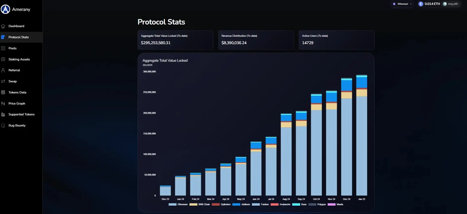 Amerany is a cutting-edge decentralized finance (DeFi) staking platform that provides users with a secure, flexible, and high-yield staking experience. Supporting over 10 blockchain networks, including Ethereum (ETH), Aptos (APT), and Optimism (OP), Amerany simplifies the staking process with an intuitive interface and multi-chain capabilities. The platform is designed to accommodate both beginners and experienced investors, offering a range of staking options to optimize returns while mitigating risks.