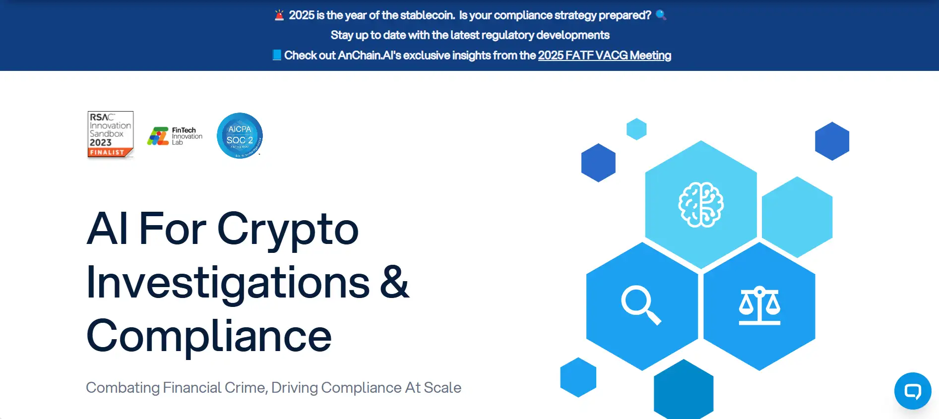 AnChain.AI is a premier provider of AI-powered blockchain intelligence solutions for investigations, compliance, and risk management in Web3. Designed to combat financial crime and ensure regulatory compliance, AnChain.AI empowers public and private organizations with cutting-edge tools to detect illicit activity, audit smart contracts, and secure their digital ecosystems.