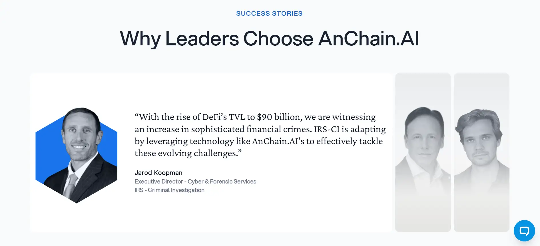 Top-tier institutions and brands like Cryptovoucher.io, Huobi, and Bluehelix have partnered with AnChain.AI to secure their platforms. It also plays a central role in public investigations, such as the Harmony Bridge hack and GSR due diligence. In a space shared with providers like Chainalysis, Elliptic, and CipherTrace, AnChain.AI leads with real-time intelligence, modularity, and machine learning insights.