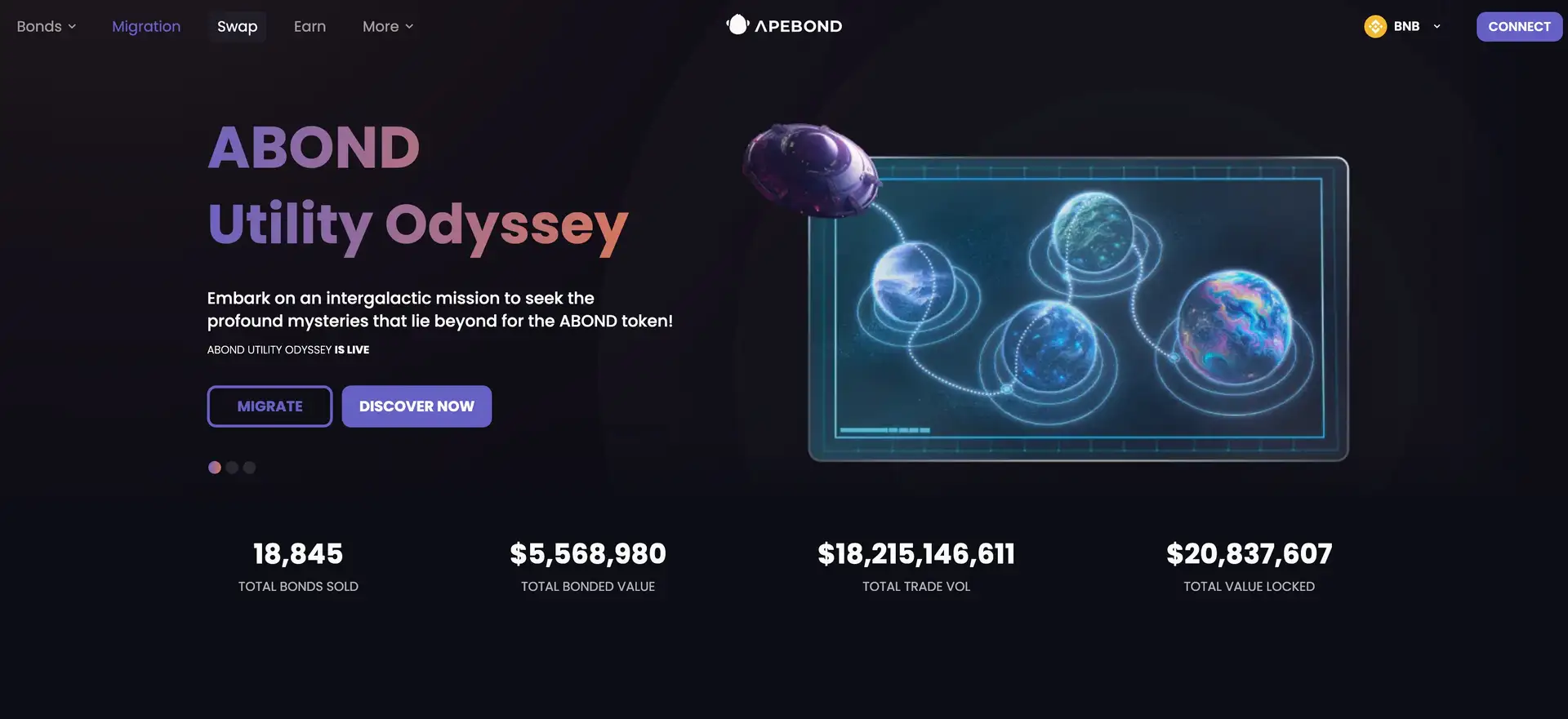 ApeBond is an innovative platform designed to bring together decentralized finance (DeFi) elements with unique utility features to create a comprehensive ecosystem for its users. The platform focuses on creating a community-driven environment where users can trade, stake, and participate in governance using the $APEBOND token.