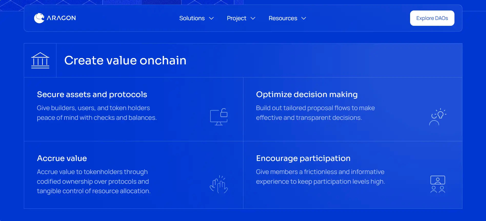 Aragon provides an extensive suite of features and benefits that set it apart as a leader in DAO infrastructure: