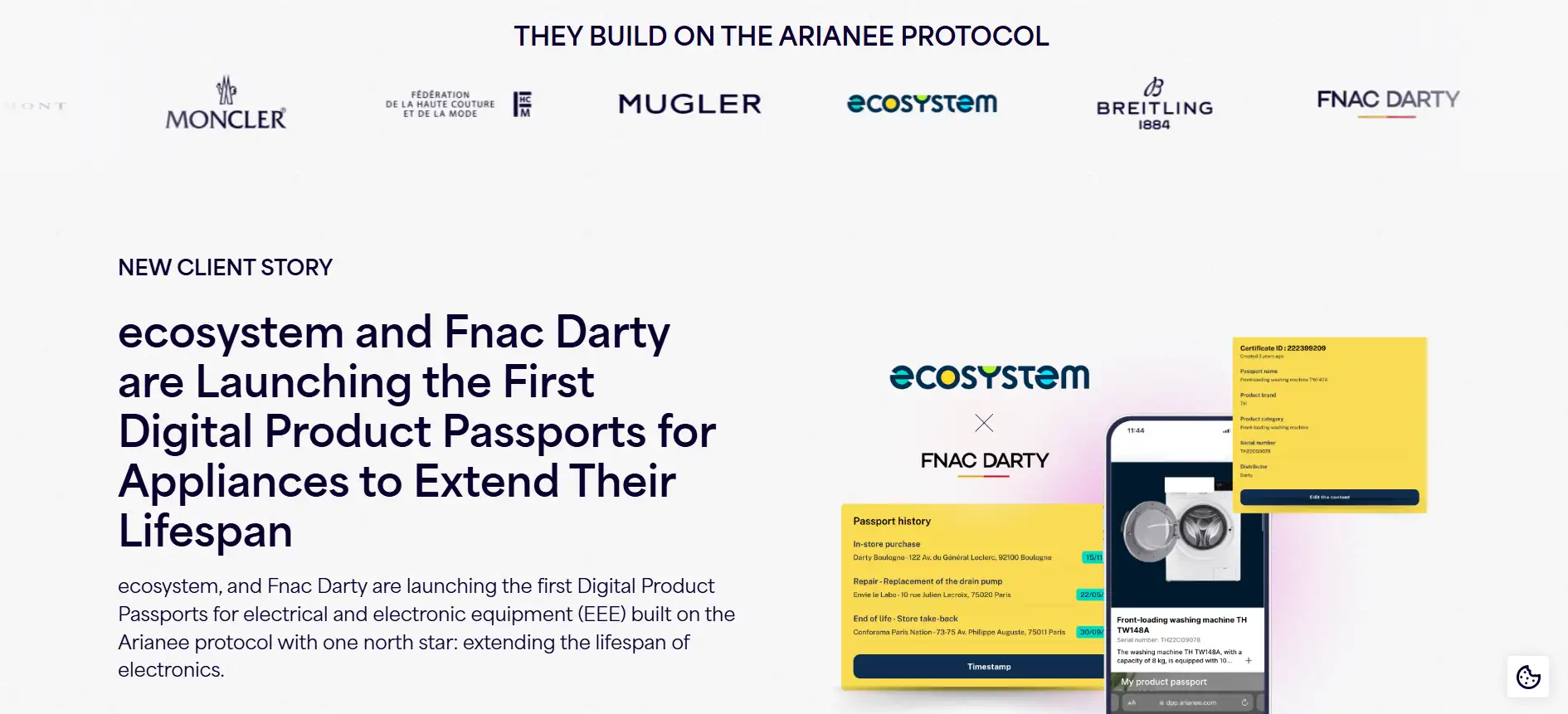 What makes Arianee stand out is its broad adoption and real-world implementation. Brands like Breitling, Yves Saint Laurent, Fnac Darty, and Richemont have issued over 3 million passports using the protocol. In sectors like electronics, Arianee-powered DPPs are helping companies extend the lifespan of household goods by offering repair tracking, ownership transfer, and personalized services all tied to the product’s identity.