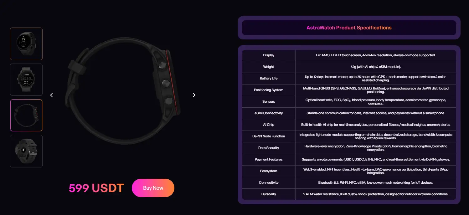 Through its Health-to-Earn mechanism and Web3 payment gateways, Astra enables seamless interaction between devices, users, and servicesâcreating a decentralized, secure, and rewarding wearable ecosystem.