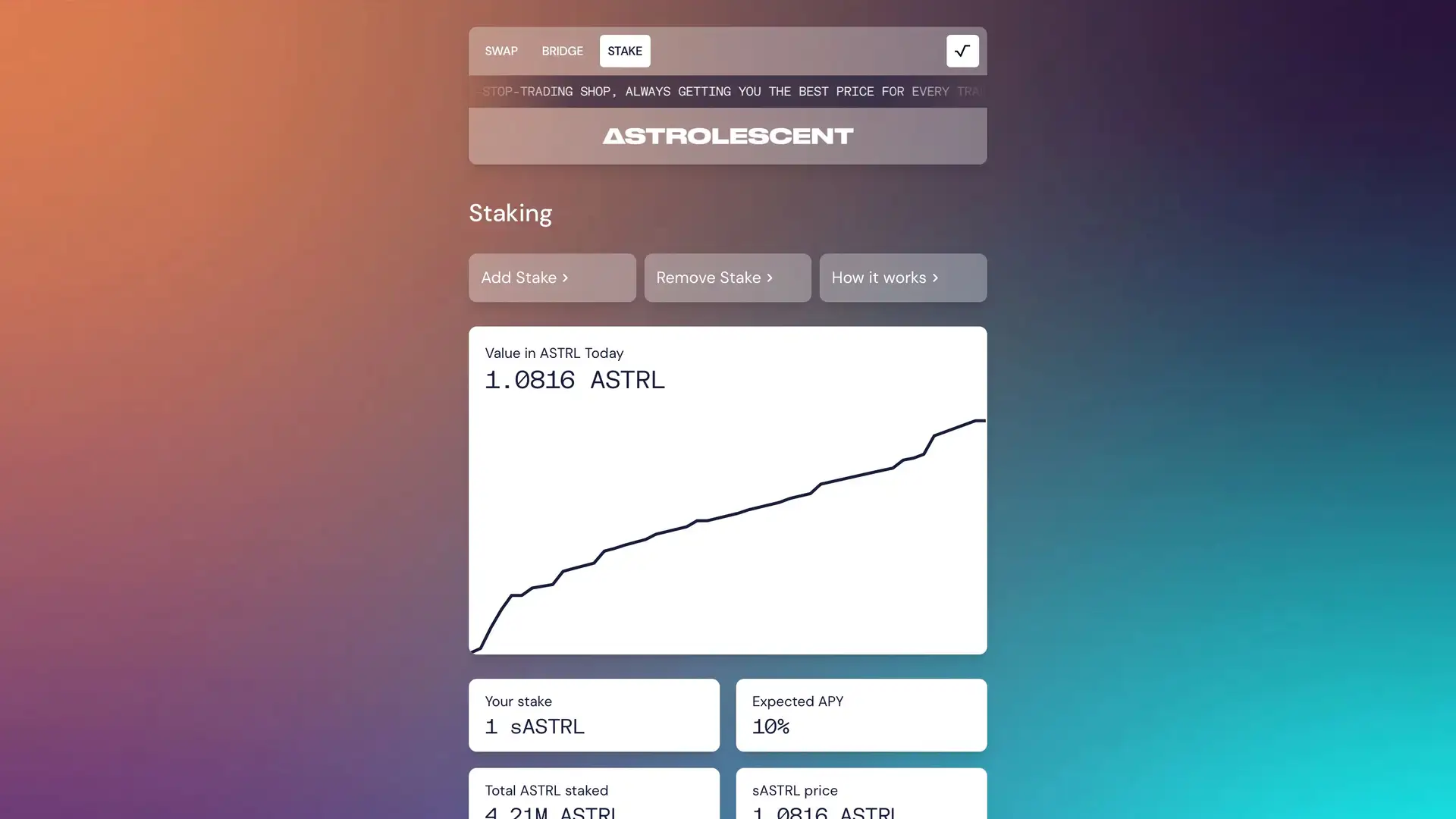 - Stake $ASTRL: Stake tokens to earn rewards and participate in governance.