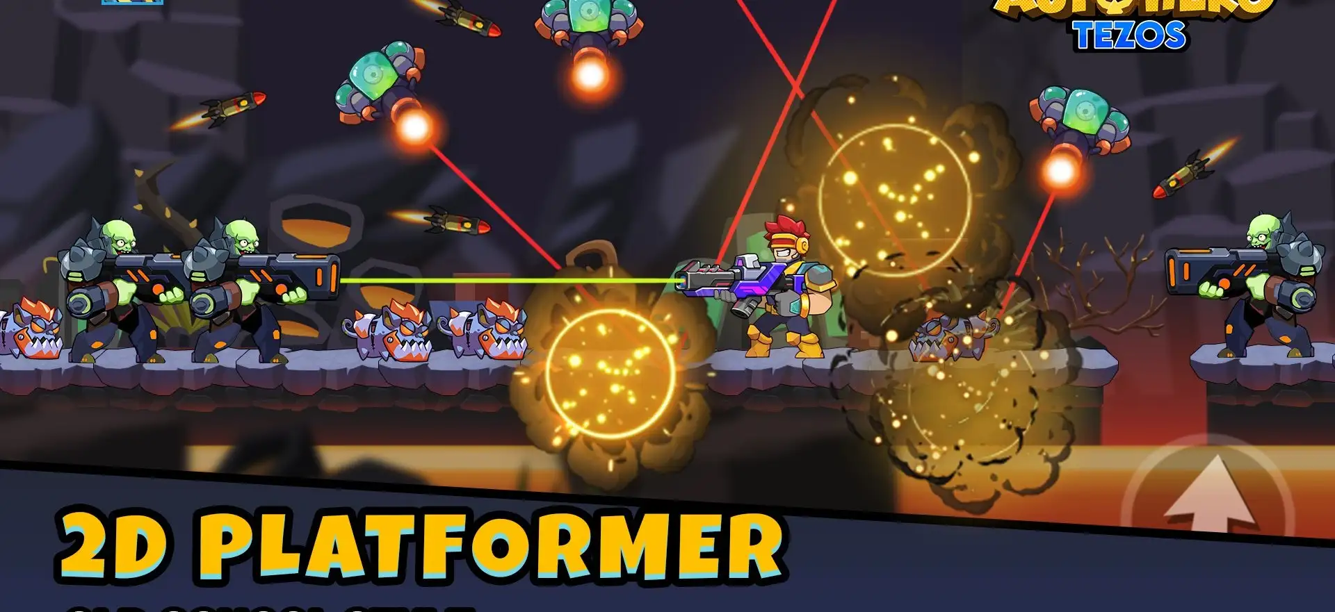 AutoHero Tezos is a blockchain-based 2D side-scrolling shooter game featuring an innovative auto-shooting mechanic. This allows players to focus on character navigation while the game automatically handles shooting. Players can engage in single-player and multiplayer modes, with challenges across various stages and game modes. The game integrates blockchain technology by rewarding players with $AHT tokens, which can be used in the game’s economy, making it more than just a shooter but a play-to-earn experience. Visit the official page here for more details.
