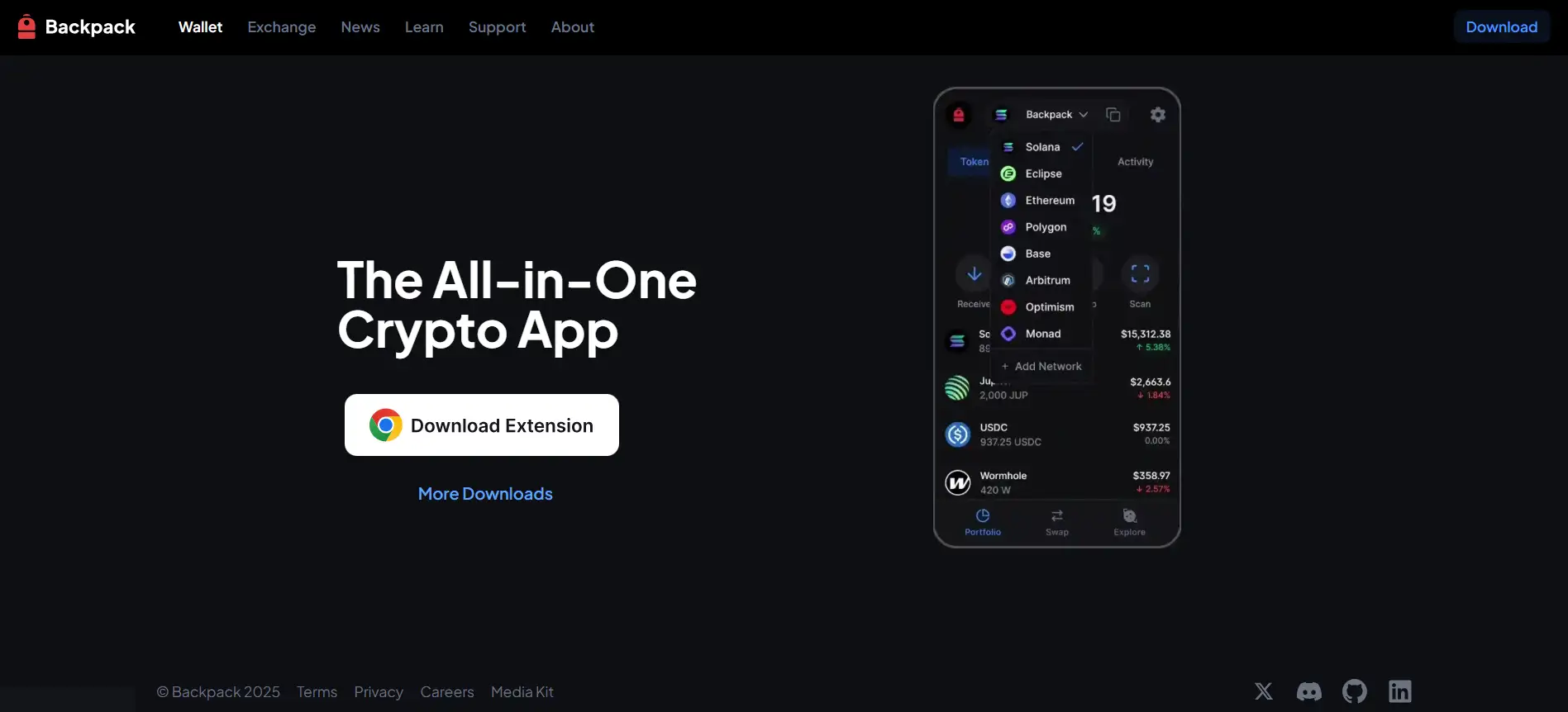 Backpack is an all-in-one crypto platform designed to simplify every aspect of your Web3 experience. It combines a secure, self-custodial wallet, a fully regulated cryptocurrency exchange, and curated crypto news and education into a single, easy-to-use application. By offering a seamless interface for managing digital assets, trading markets, and staying updated with industry trends, Backpack positions itself as a trusted guide in the evolving blockchain space.