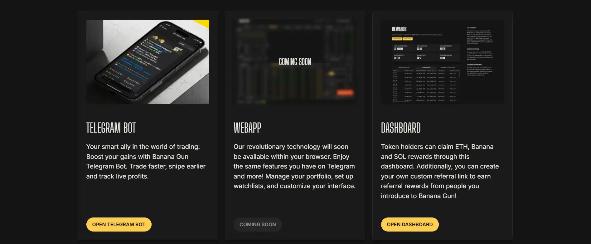 As the cryptocurrency landscape evolves, Banana Gun is committed to adapting and expanding its offerings, ensuring it remains a leader in the trading bot space while continually meeting the dynamic needs of its users.