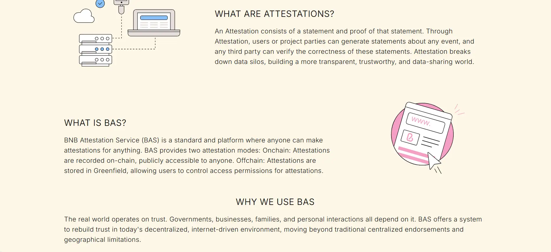 The goal of BAS is to enable a new class of dApps that can rely on verified claims without compromising decentralization or data privacy. With more than 40 million attestations and over 2.5 million unique addresses interacting with the platform, BAS is gaining rapid traction across the BNB Chain ecosystem and beyond. By leveraging both on-chain mechanisms and decentralized storage (via Greenfield), BAS empowers users to control how, when, and with whom their data is shared.