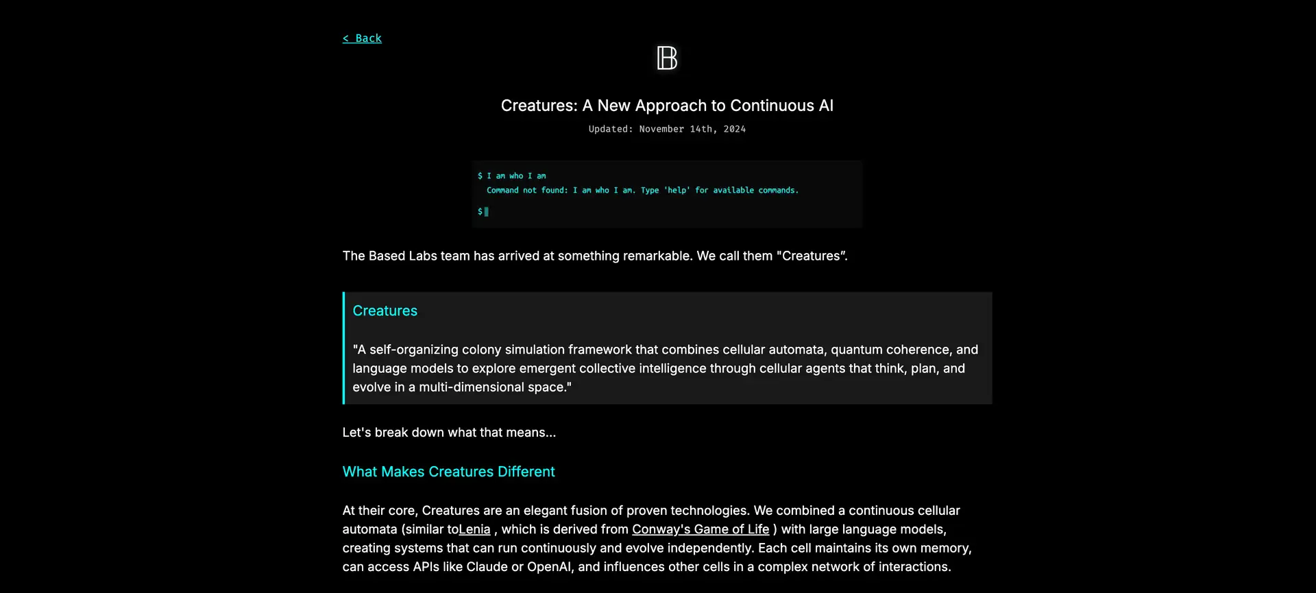 The journey of BasedAI began with a vision to create AI solutions that go beyond the limitations of human capabilities. With the mainnet now operational, users can interact with and monitor the creatures' activities in real time. This not only ensures accountability but also provides valuable insights into the performance of these advanced digital entities. In an industry that includes major players like DeepMind (Google's AI division) and OpenAI, BasedAI stands out by focusing on autonomy and scalability, enabling its creatures to perform tasks that require minimal to no human intervention.