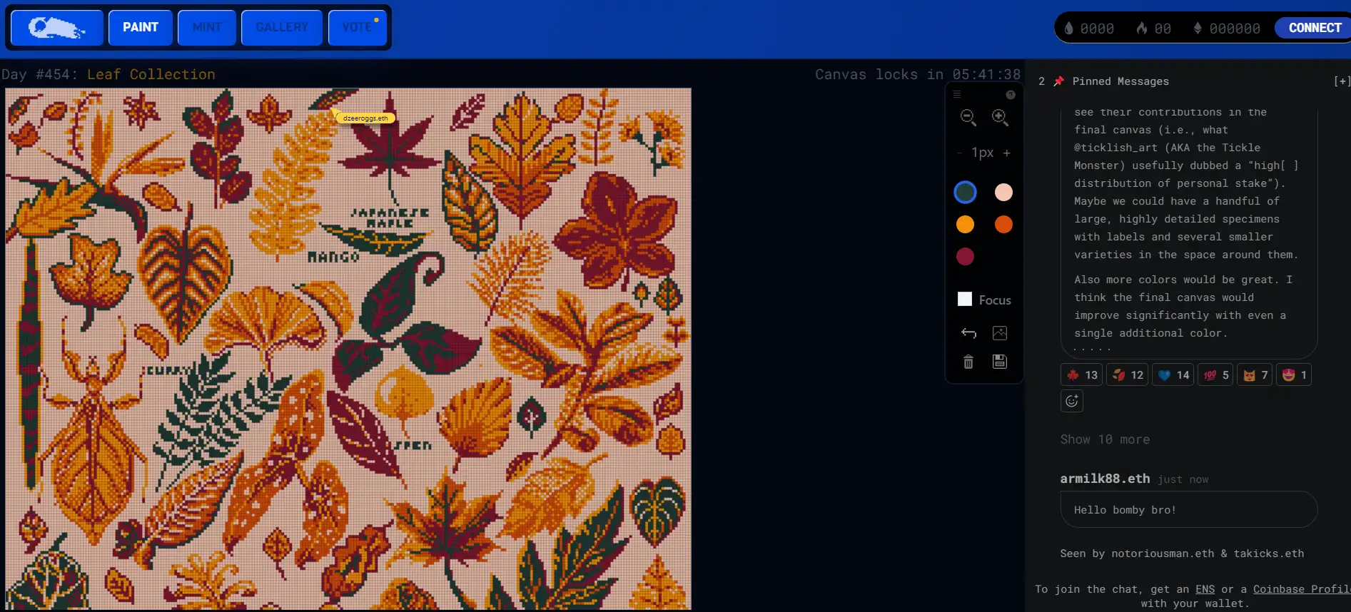 - Contribute to the Canvas: Log in and participate in the daily collaborative canvas by adding pixels based on the day’s theme and palette. The guidelines are community-driven and voted on by participants.