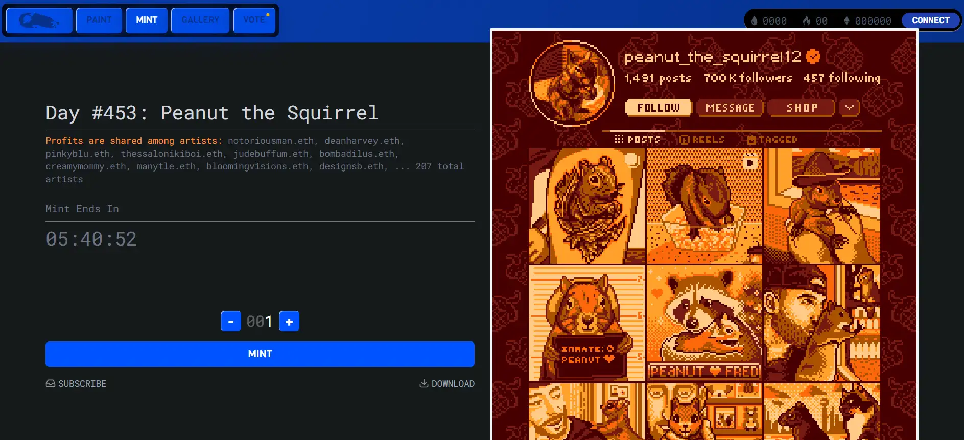 - Mint a Brush NFT: Visit the Brush Minting Page to acquire a brush NFT, which is required for contributing to the canvas.