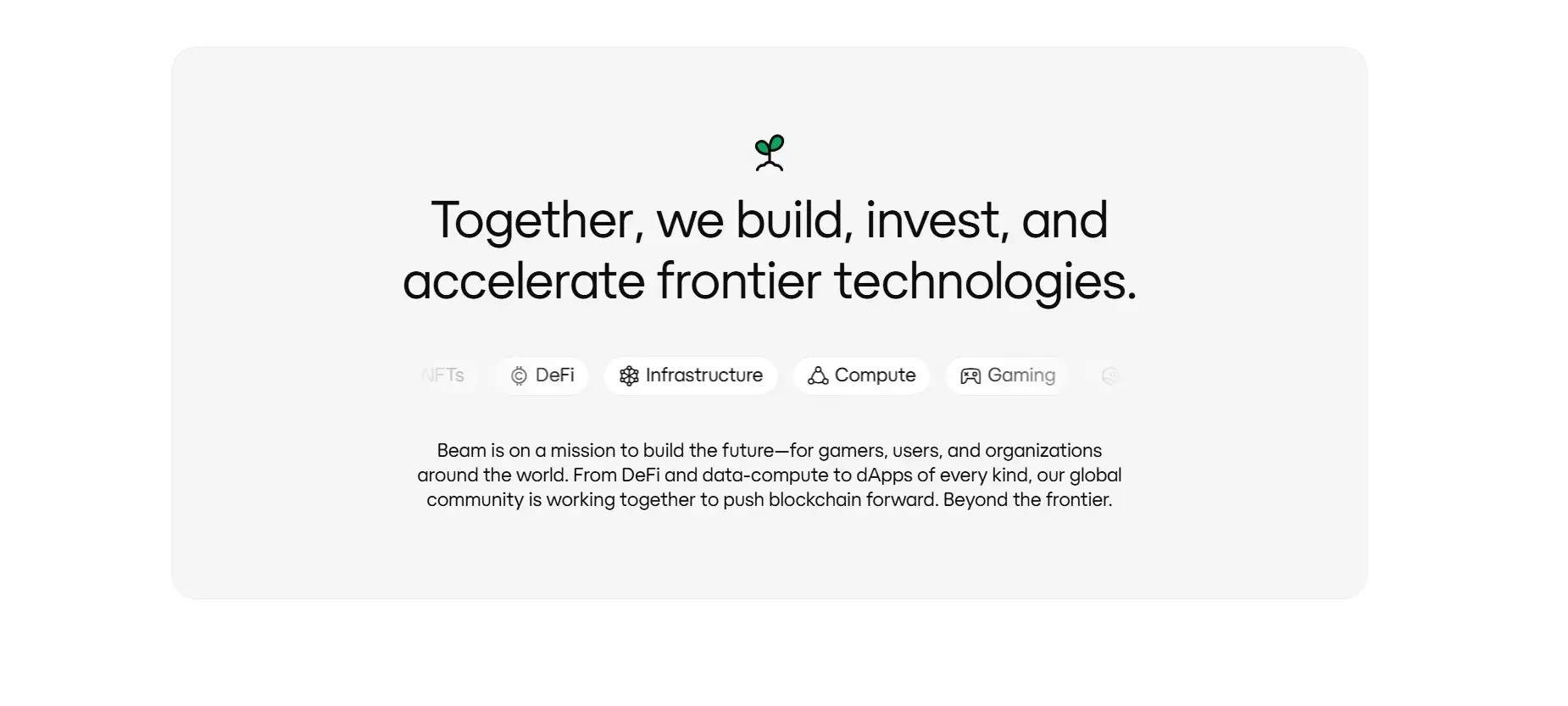 Yes. Beam Foundation actively supports developers and researchers with a range of grants and funding programs. Additionally, Beam Ventures—its $150M gaming fund—alongside the Booster accelerator in Abu Dhabi, provides strategic investment, mentorship, and go-to-market support. Whether you're building a game, infrastructure, or AI app, Beam has capital and community backing to help bring your ideas to life.