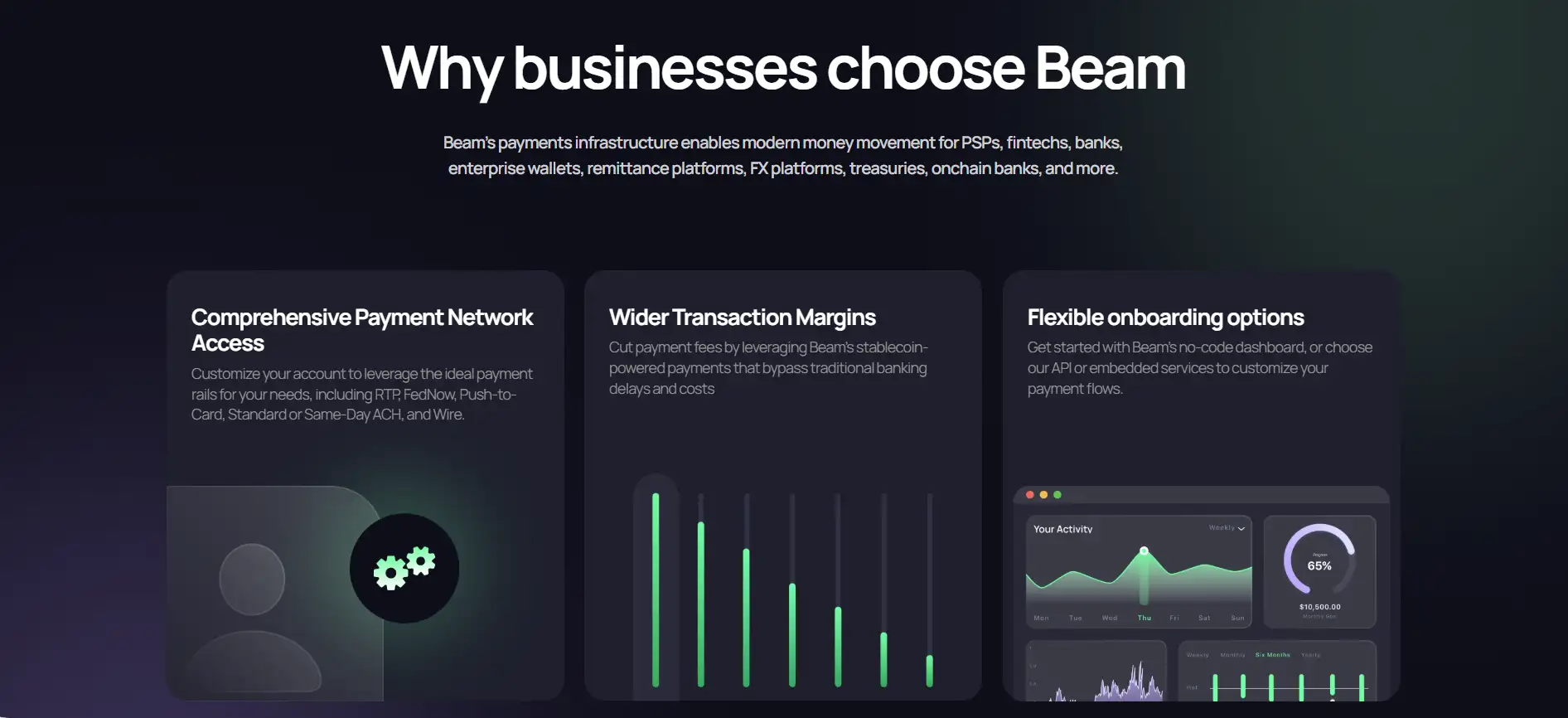 - White-Label Solution: Launch branded payment services while Beam handles all backend operations and regulatory compliance.