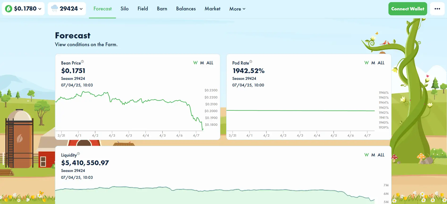 - Utilize the Field: Lend Beans to the protocol by sowing Soil and receive Pods in return. Pods are repaid in a FIFO manner and are tradable on the Pod Market.