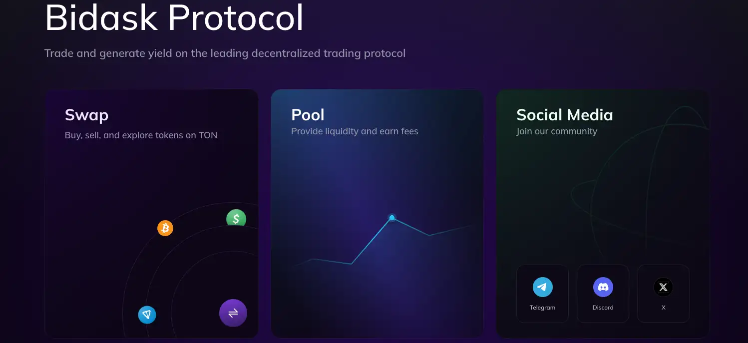 Bidask is an innovative DeFi trading protocol operating on the TON blockchain, focused on delivering an advanced, high-performance DEX solution tailored for fast, low-fee, and permissionless trading. By integrating Concentrated Liquidity Market Making (CLMM)—an upgrade from traditional Automated Market Makers (AMMs)—Bidask empowers liquidity providers with granular control over how and where they allocate their assets. This innovation leads to enhanced capital efficiency, minimized slippage, and maximized fee earnings.