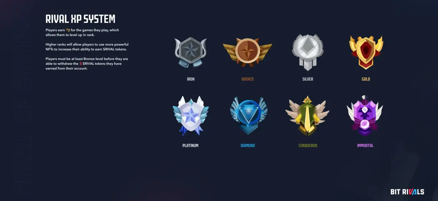 - Rival Rewards: A system that allows players to earn points through gameplay, which can be redeemed for $RIVAL tokens, profile cosmetics, official merchandise, and more. This rewards system incentivizes active participation and engagement, making it an integral part of the Bit Rivals experience.