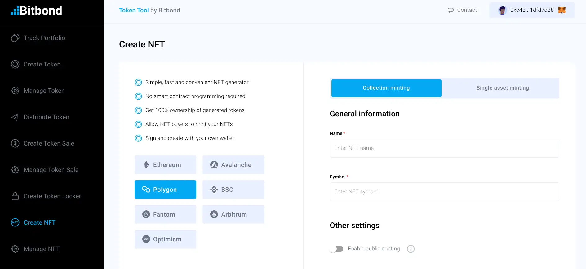 One of the standout features of the Bitbond Token Tool is its multi-chain support, which includes deployment on leading EVM-compatible chains such as Ethereum, Polygon, and Avalanche. This versatility ensures that users can choose the most suitable blockchain for their specific needs.