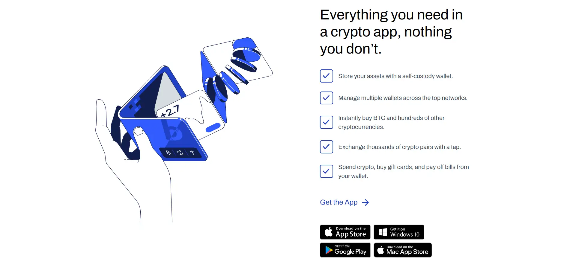 - Buy, Swap, and Spend: Users can buy crypto at competitive rates, swap between thousands of pairs, and use their assets to pay bills or purchase gift cards for major brands—all within the app.