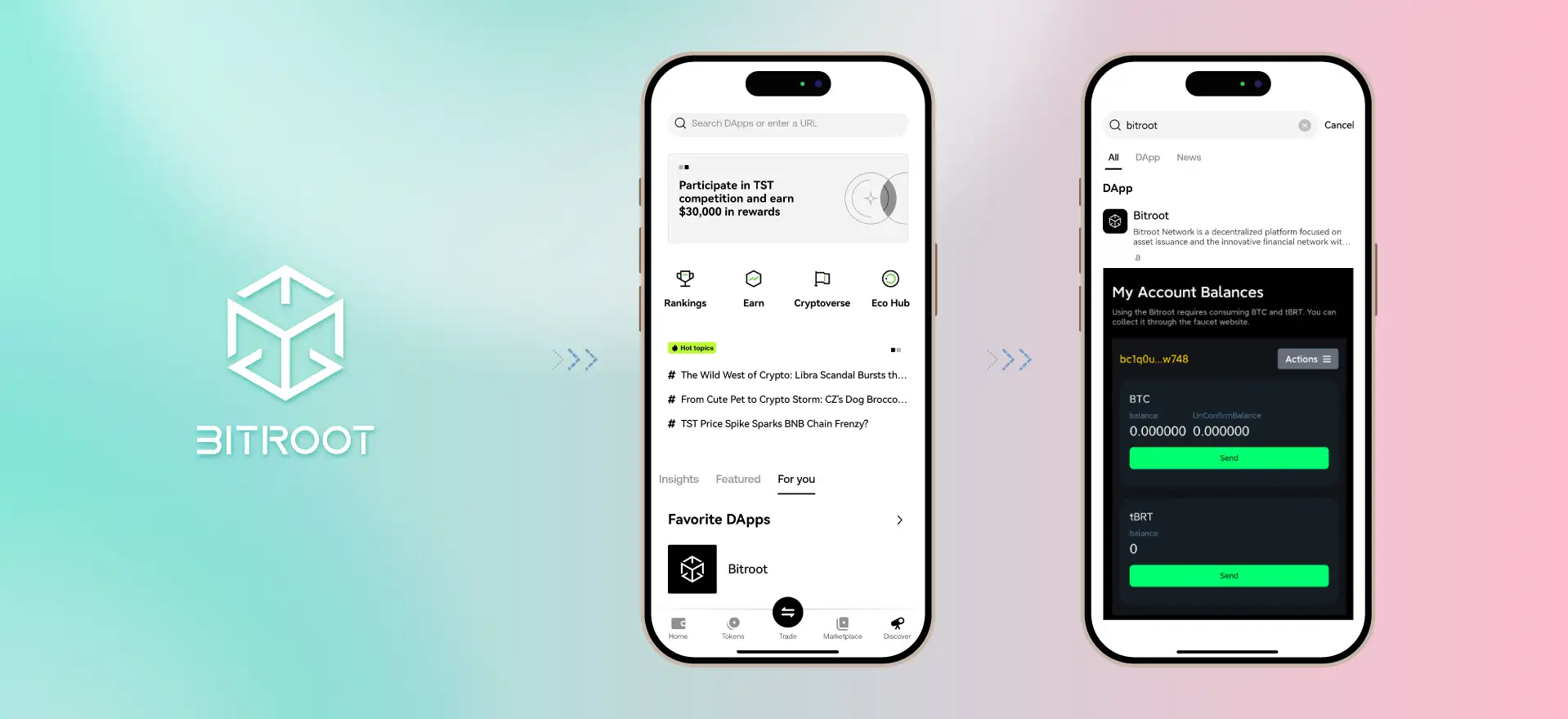 - Bitroot VM: A virtual machine built on Bitcoin that enables native asset minting, smart contract deployment, and asset transfers.