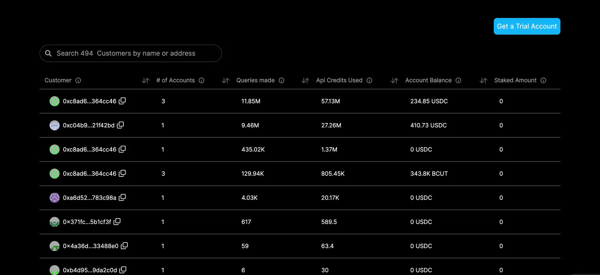 - Step 3: Create a Billing Account: Deposit stablecoins to start accessing API services. Optionally, stake $BCUT for discounts.