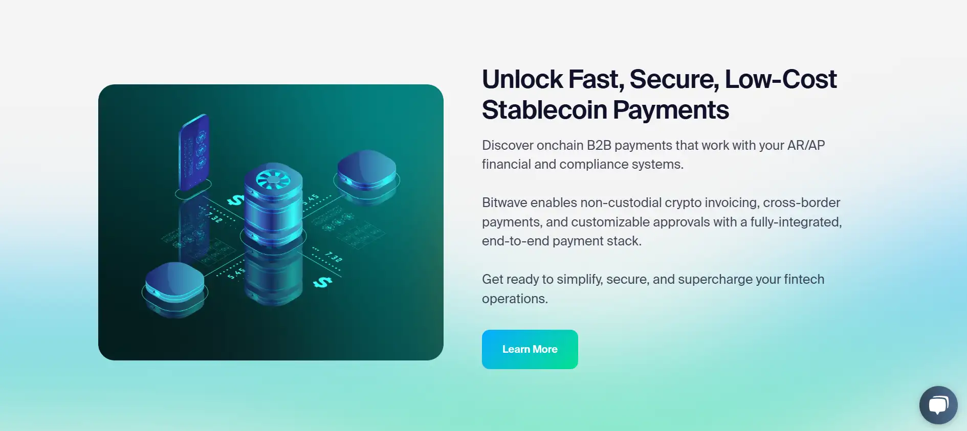 - Stablecoin B2B Payments: Send and receive stablecoin payments with near-instant settlement and zero hidden fees, eliminating costly third-party processors.