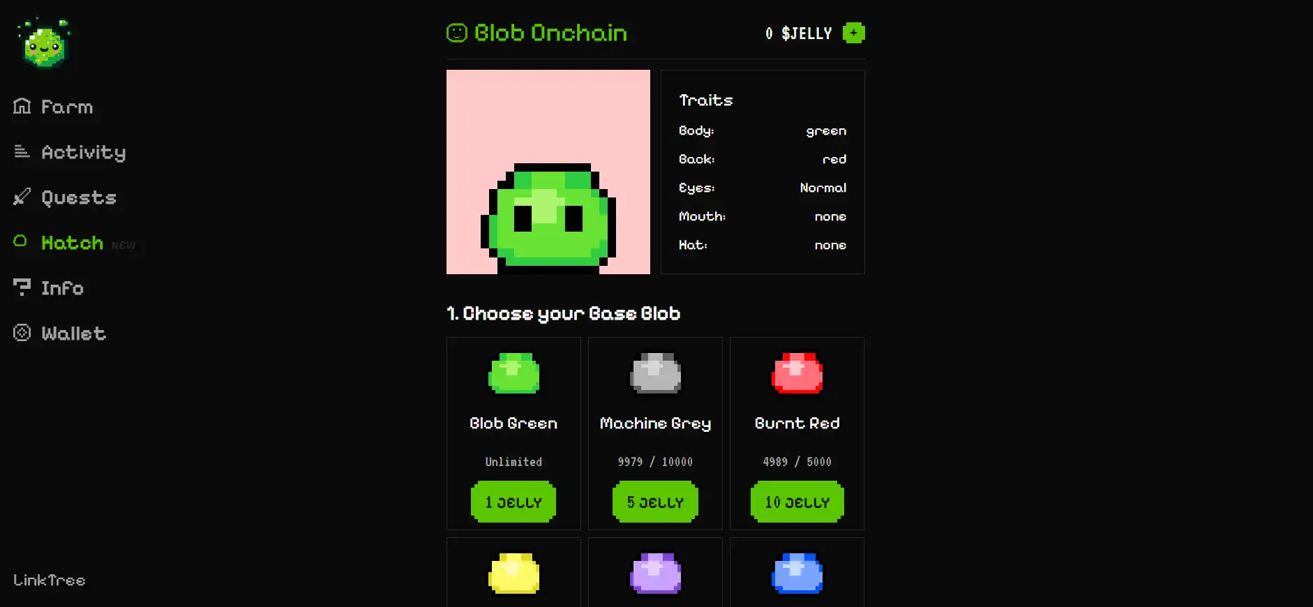 - Start Growing Your Farm: Accumulate goo and decide whether to hatch more blobs to expand your farm or sell goo for ETH. Tailor your strategy to maximize rewards and enjoy the experience.
