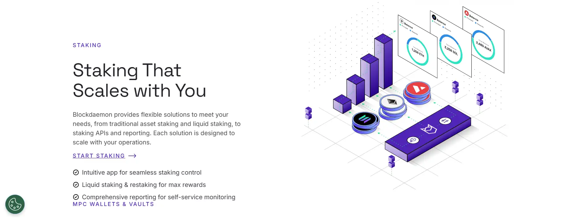 With industry certifications such as ISO 27001 and SOC 2 Type II, Blockdaemon ensures top-tier security, compliance, and reliability. The platform supports 70+ Proof-of-Stake networks and offers full slashing-risk coverage, making it one of the most secure and resilient options for institutions entering the blockchain space. Through its global infrastructure, Blockdaemon delivers seamless access to staking, wallets, APIs, and data—empowering institutional adoption of decentralized technologies.