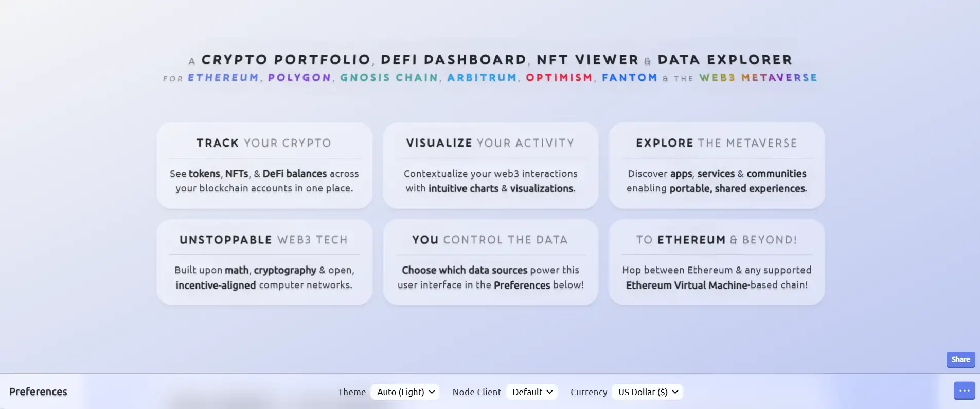 - Step 4: Customize Your Interface – Use the Preferences panel to select your favorite themes, data APIs (like CoinPaprika, Covalent), and currency display.