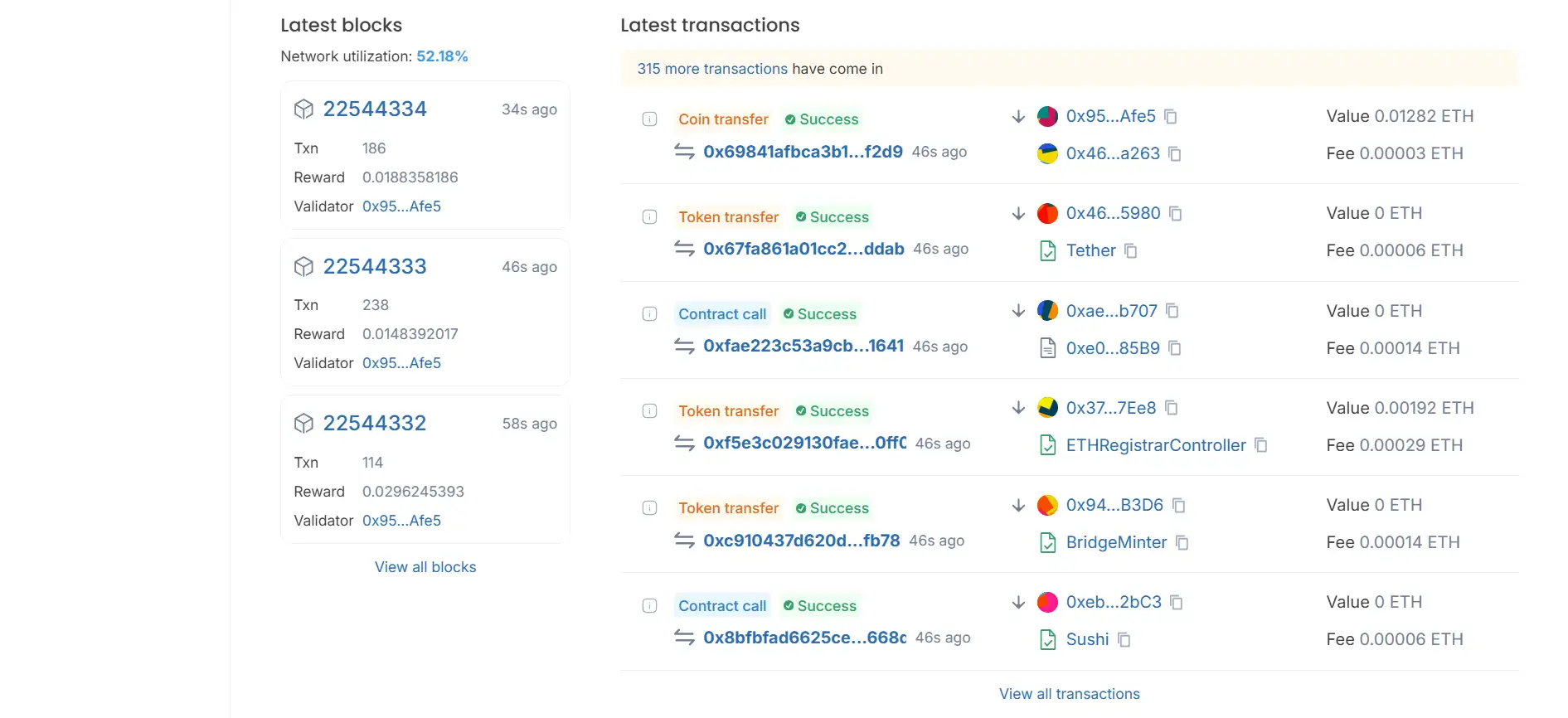 - Search Blockchain Data: Use the top search bar to look up transactions, block numbers, wallet addresses, or smart contracts.