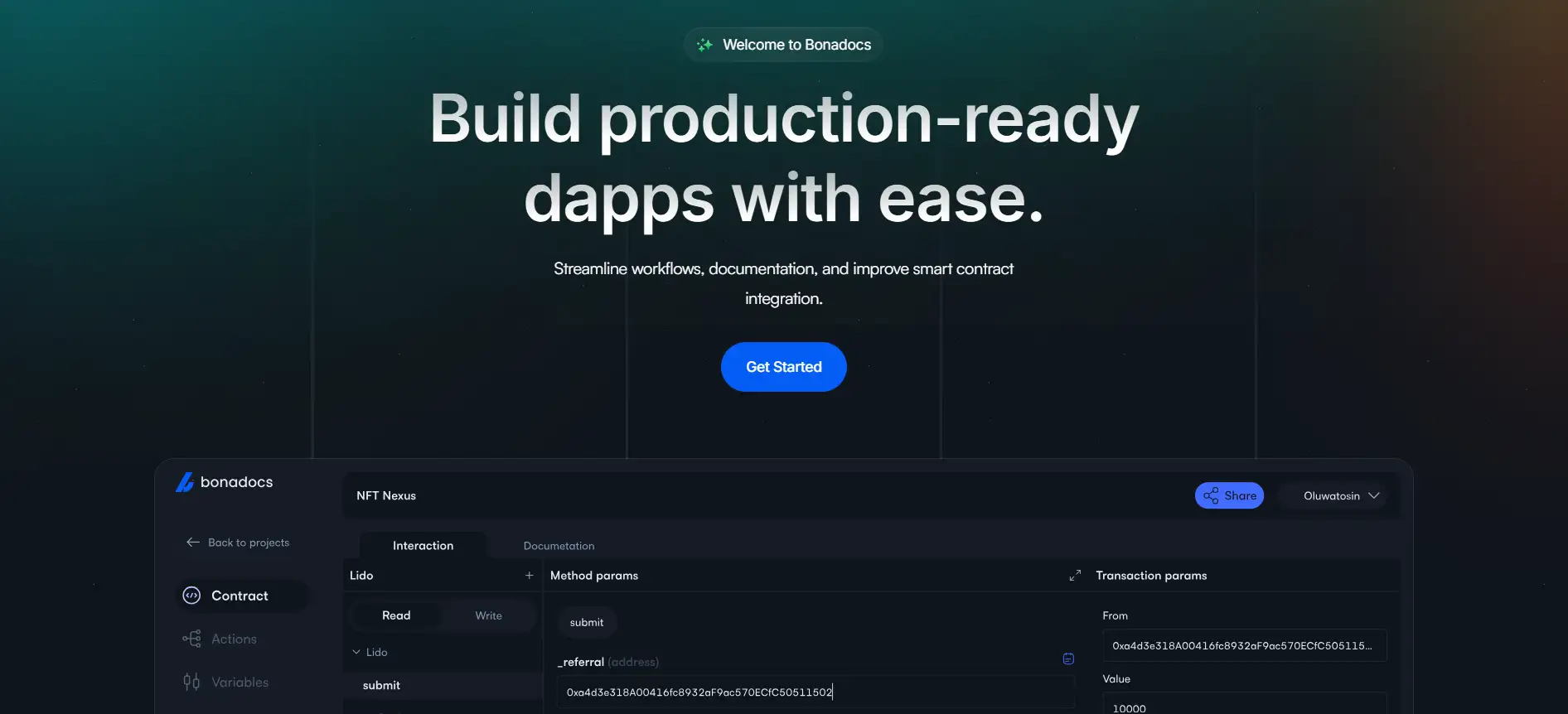Unlike generalized doc tools like Docsify or Docusaurus, Bonadocs is purpose-built for Web3. It's already supporting leading protocols and is becoming the go-to tool for teams focused on improving developer experience in Web3. From hackathon teams to protocol-level engineering orgs, Bonadocs is changing the way smart contracts are documented, tested, and shared.