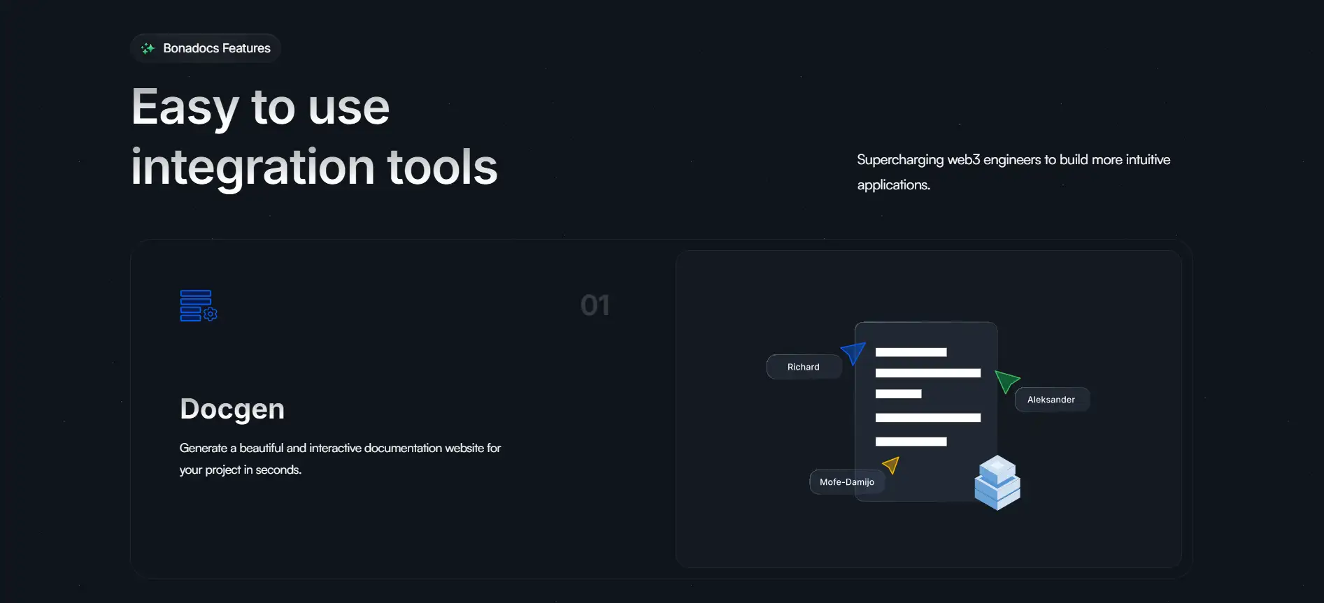 Getting started with Bonadocs is straightforward and highly flexible for Web3 teams looking to build, document, and scale fast: