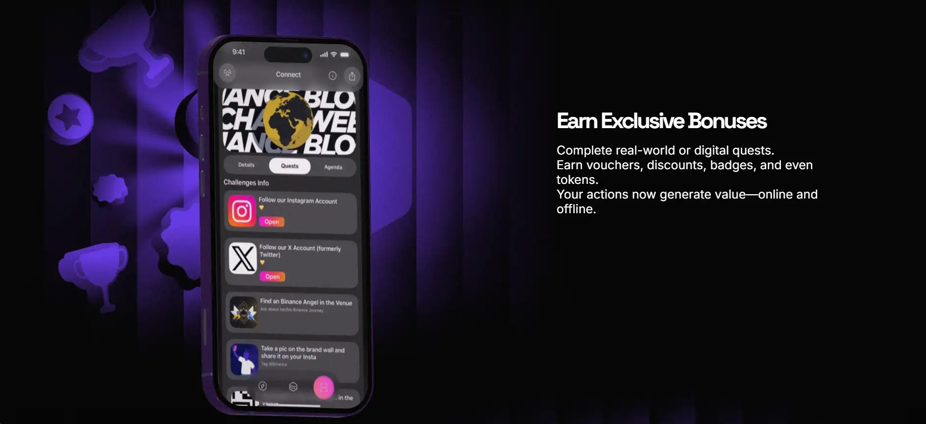 With the Bonuz Wallet, users can perform a wide range of actions—from earning tokens and badges by completing digital or real-world quests to unlocking VIP status at events through QR check-ins. All interactions are recorded on-chain, ensuring authenticity and transparency. Additionally, Dynamic NFTs allow brands to reward users with vouchers, memberships, or achievements that can evolve over time or be soul-bound to ensure exclusivity.