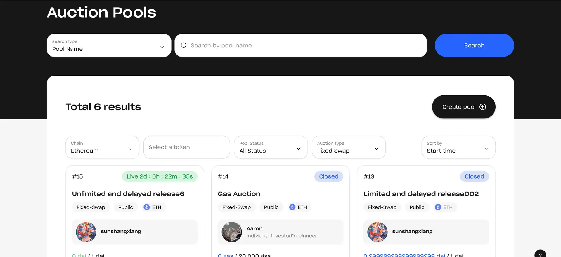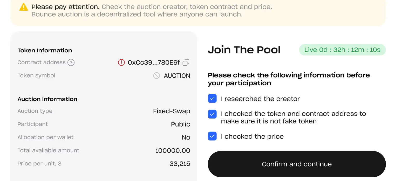 - Multiple Auction Types: Bounce Finance supports various auction models, including English, Dutch, sealed-bid, and liquidity lock auctions. This versatility allows users to choose the auction type that best suits their needs and preferences.
