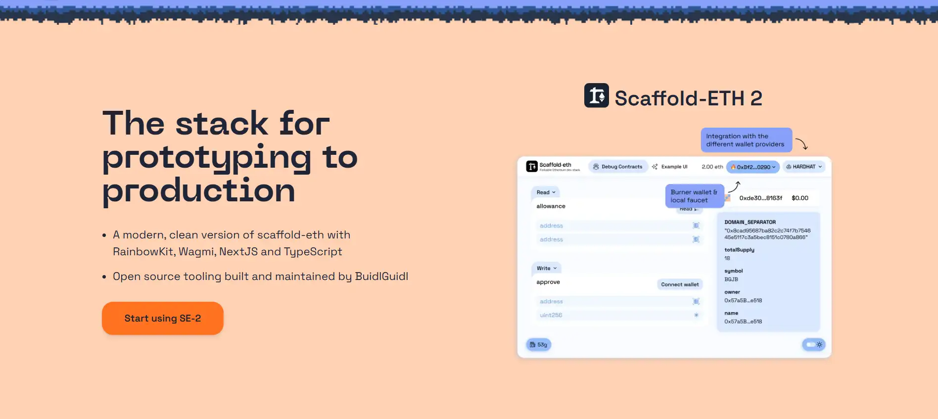 - Scaffold-ETH 2 Toolkit: A full-stack, forkable framework combining Next.js, RainbowKit, Wagmi and more—perfect for prototyping.