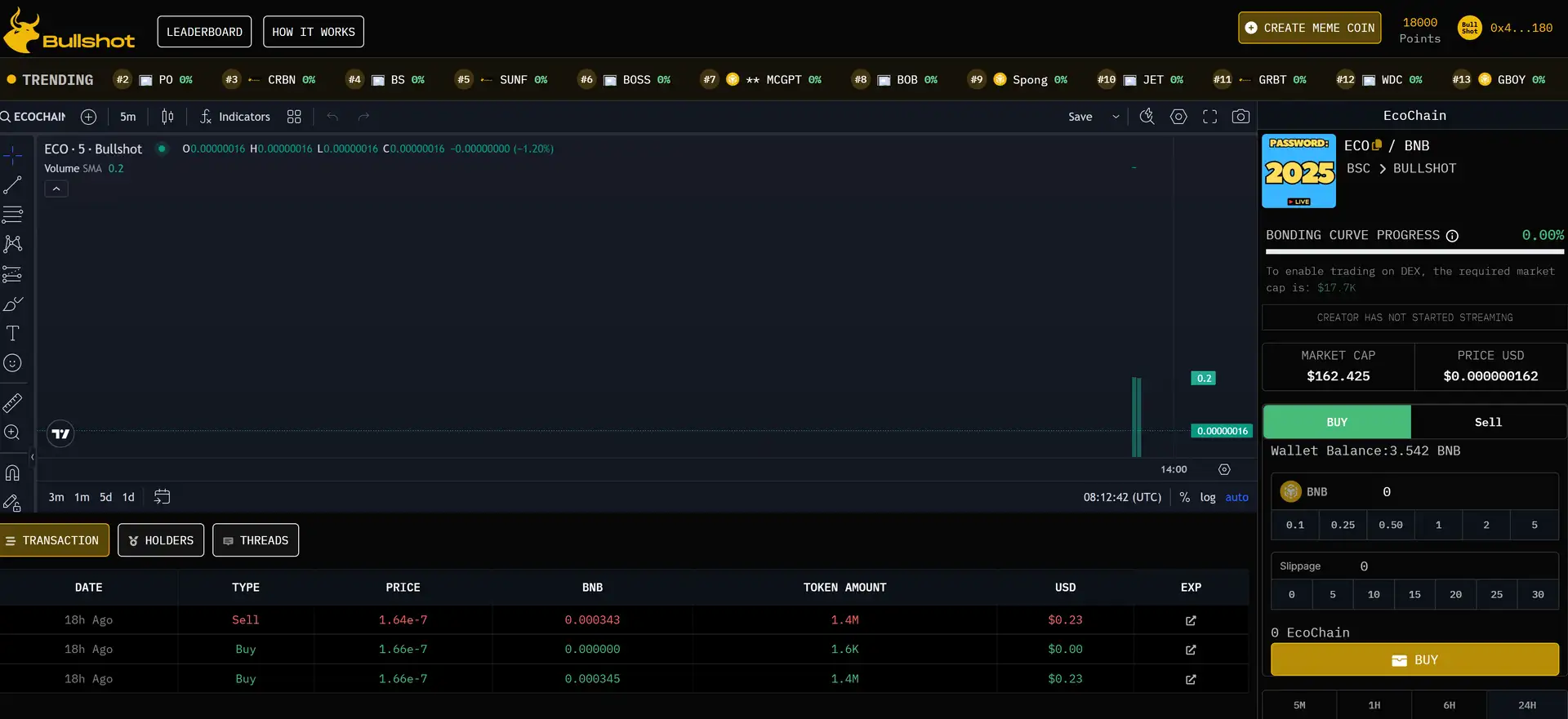 Launched with a clear focus on simplicity and virality, Bullshot features an intuitive UI and leaderboard-based incentive model that appeals to both experienced crypto users and complete newcomers. Its point system rewards users for every major action — from creating a meme coin (500 points), to sending it to DEX (10,000 points), and even referring friends (20% of their points).