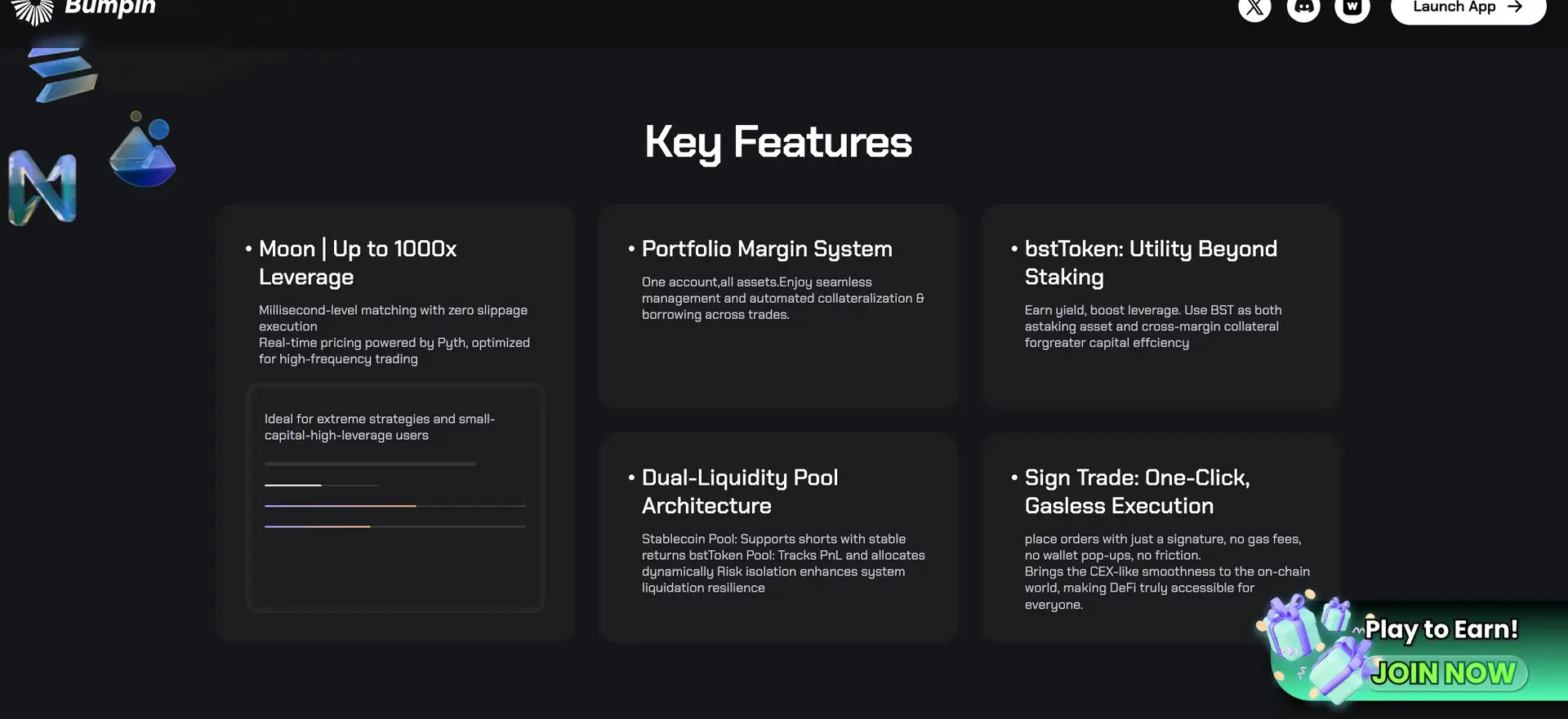 Bumpin is the first no-VC perpetual DEX on Solana, offering 1000x leverage, gas-free one-click trading, and dual-pool liquidity. With portfolio margin, it maximizes capital efficiency and ensures fair, community-first trading.