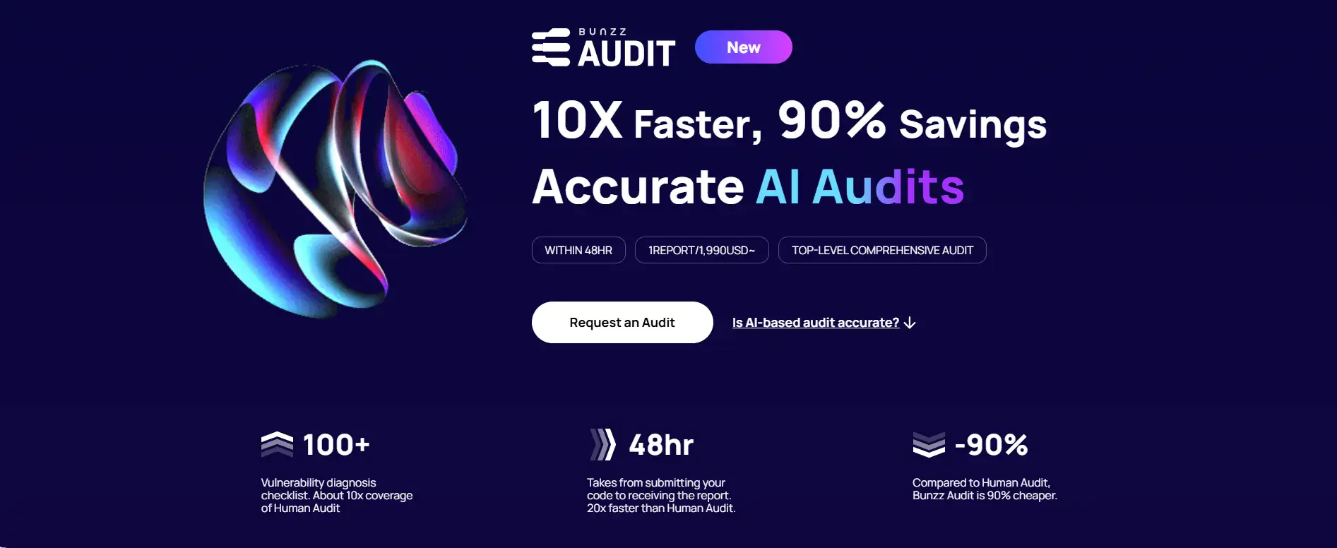 Bunzz Audit is an AI-driven auditing tool designed to identify 100+ smart contract vulnerabilities within 48 hours—10x faster and 90% cheaper than traditional audits. Unlike manual methods, which may miss patterns due to human fatigue, Bunzz leverages a structured vulnerability database and automation for high coverage and accuracy. It's ideal for developers who need affordable security without compromising quality. Learn more at Bunzz.dev.