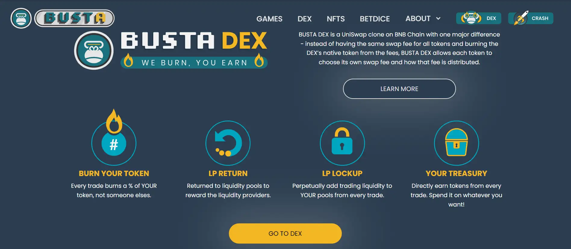The BUSTA platform is an ambitious project that redefines the integration of blockchain gaming and Decentralized Finance (DeFi). Since its launch in 2021, BUSTA has gained rapid recognition for its innovative ecosystem that combines gaming, trading, staking, and a rewards-driven affiliate program. Built on the Binance Smart Chain (BSC), BUSTA offers unparalleled features like a customizable Decentralized Exchange (DEX) and community-led governance through a Decentralized Autonomous Organization (DAO).