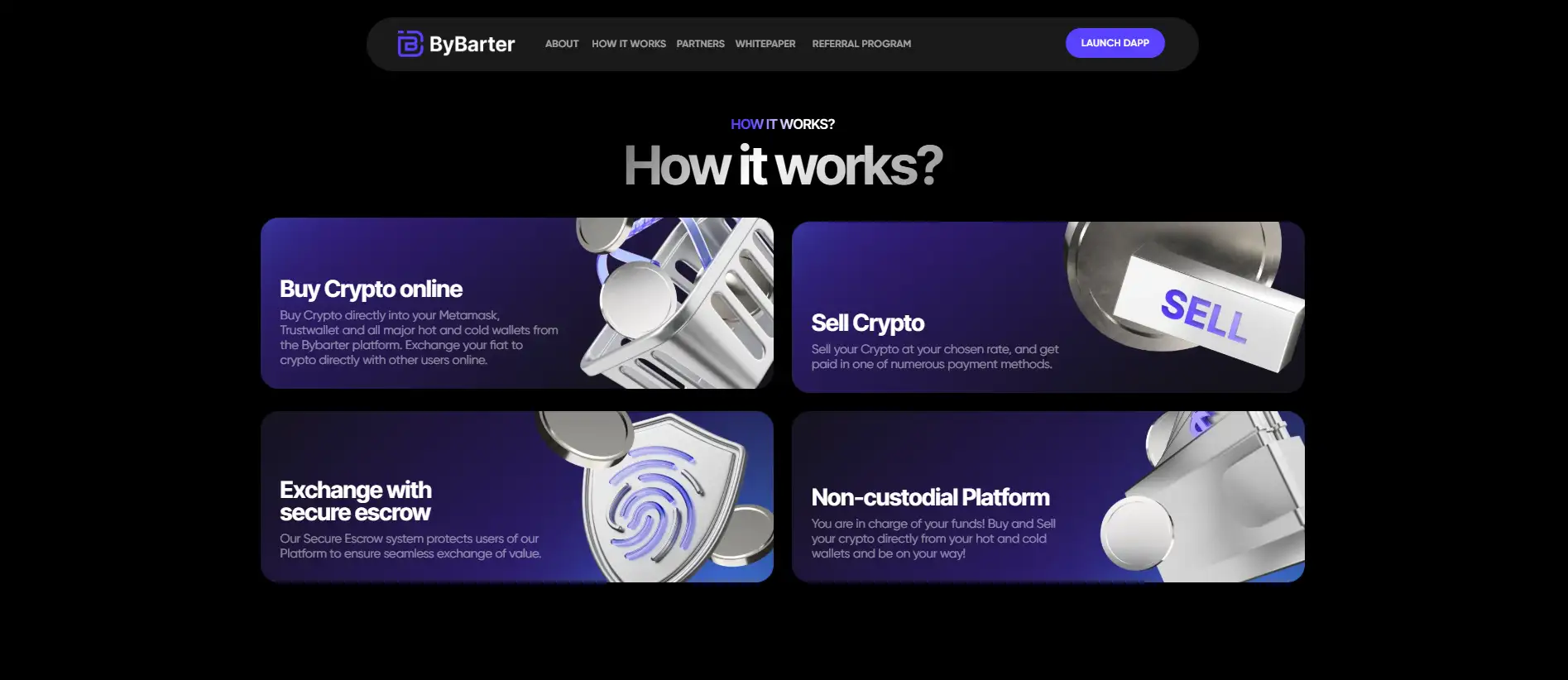ByBarter introduces a fully non-custodial on/off ramp infrastructure that lets users buy or sell crypto directly from their self-custodial wallets like Metamask and Trust Wallet. There’s no need to deposit funds into centralized exchanges. Transactions occur via secure peer-to-peer exchange models backed by an escrow system, ensuring safety and autonomy. This enables complete control and eliminates counterparty risk. Try it at ByBarter.io.