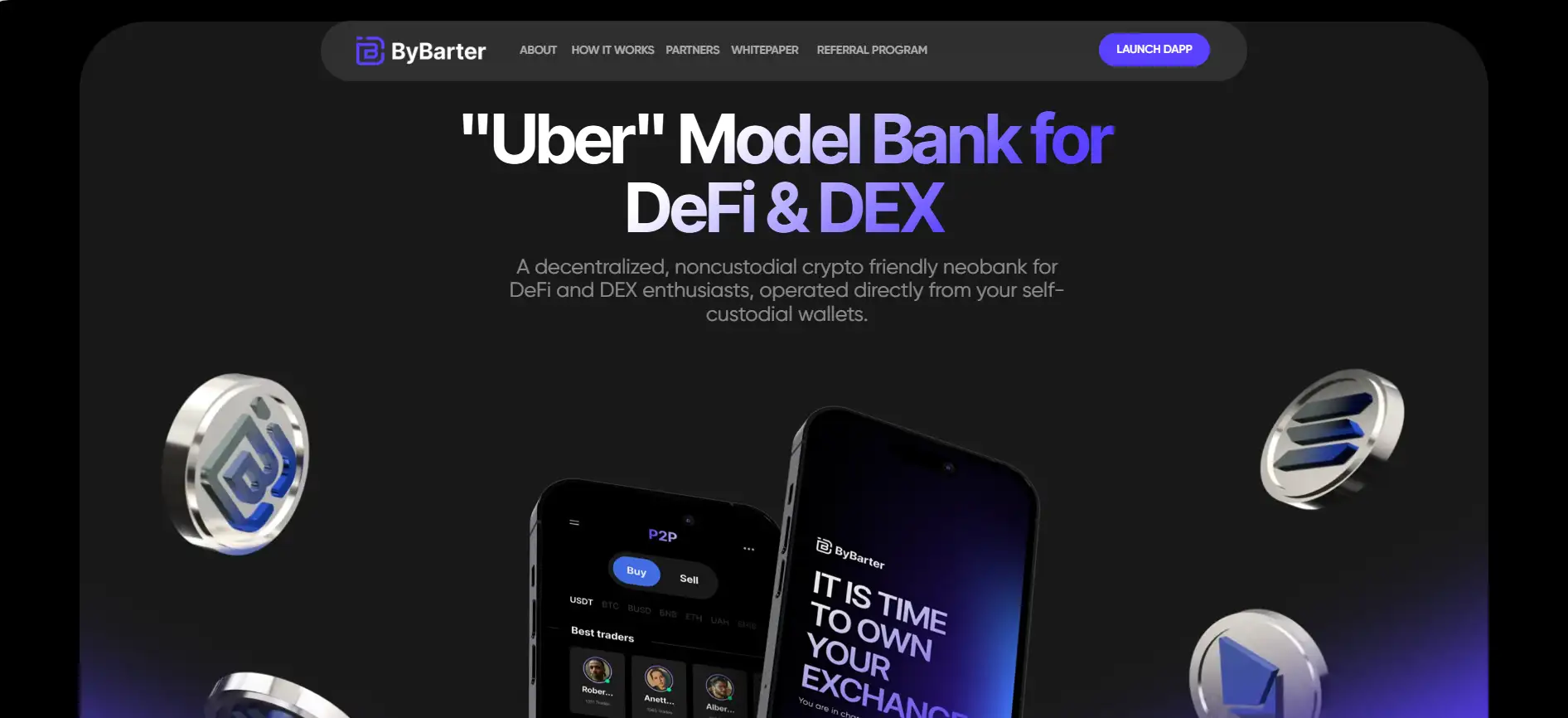 ByBarter is a decentralized, non-custodial crypto neobank that empowers users to perform on and off-ramp transactions directly from self-custodial wallets, without the reliance on centralized intermediaries. Based out of El Salvador, ByBarter aims to redefine global banking with products designed for DeFi users, DEX enthusiasts, and the global unbanked population.
