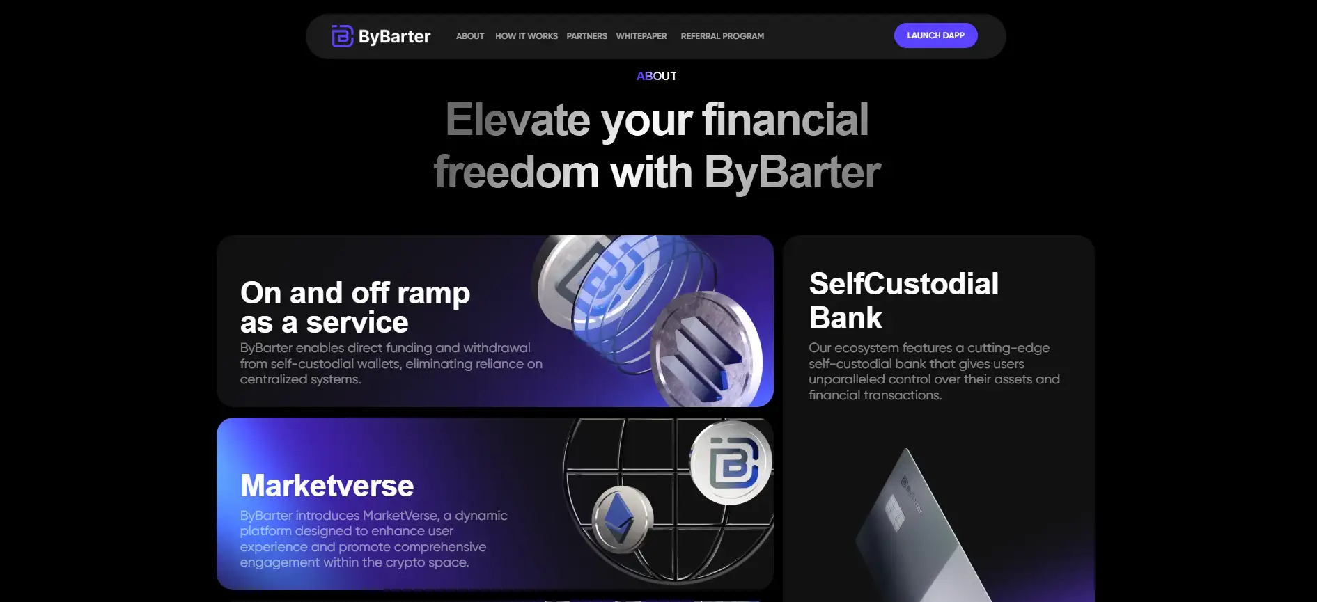 Its ecosystem includes a self-custodial bank, a decentralized on/off-ramp solution, a blockchain-based cross-border payment protocol, and the MarketVerse—a decentralized marketplace where crypto can be spent directly on goods, services, and skills. ByBarter is pioneering the new era of financial independence, giving users full control, ownership, and freedom within a robust, user-centric framework.