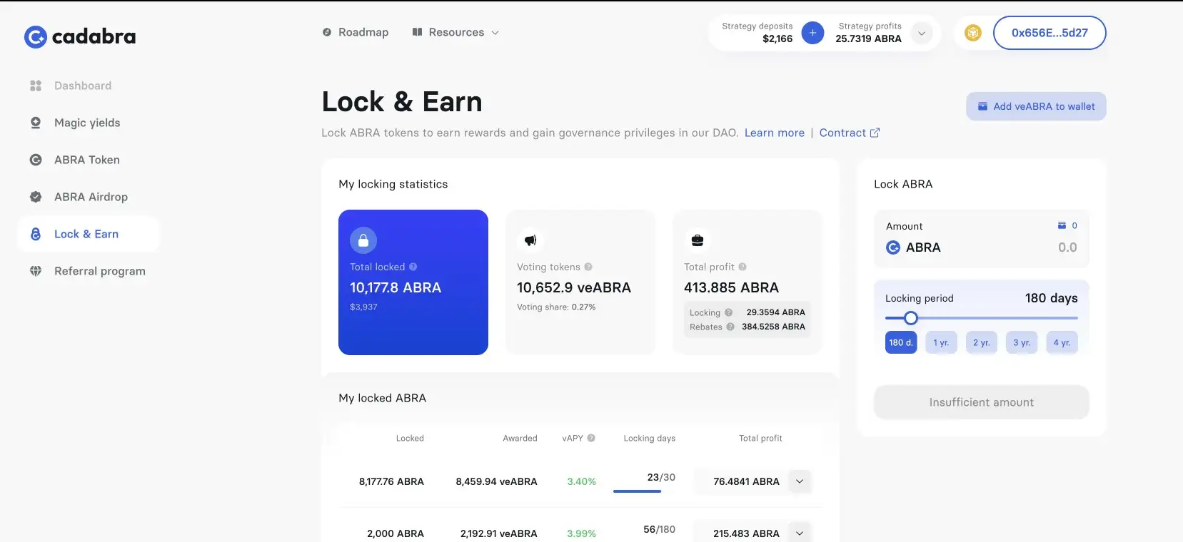 - Stake your ABRA tokens to earn veABRA and participate in governance decisions. This can be done through the staking interface on the Cadabra platform.